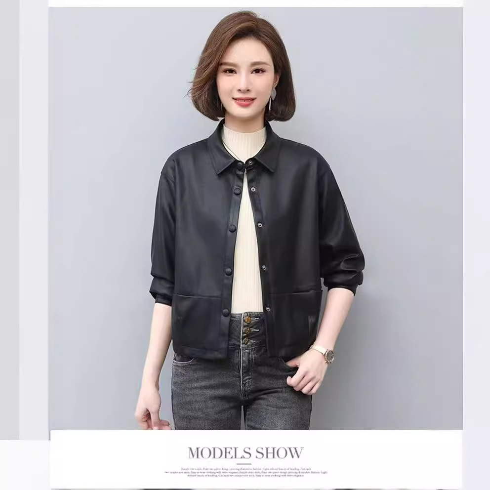 새로운 여성 가죽 코트 봄과 가을 뜨거운 판매 한국 스타일 PU 가죽 자켓 느슨한 짧은 오토바이 가죽 코트 공장 직접 판매