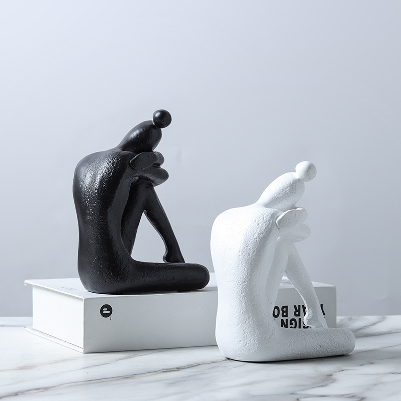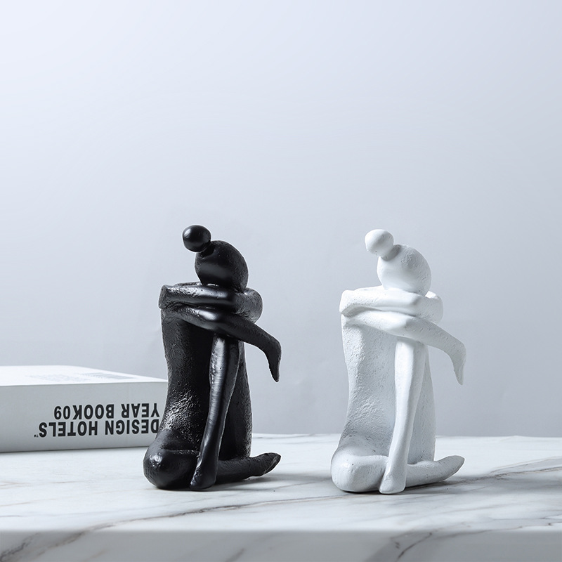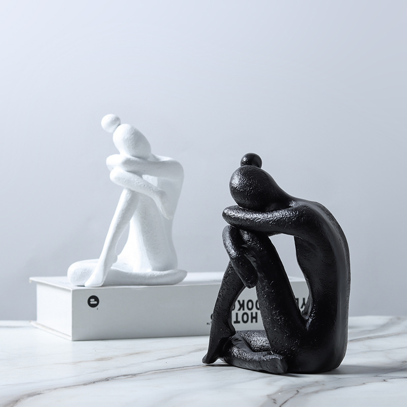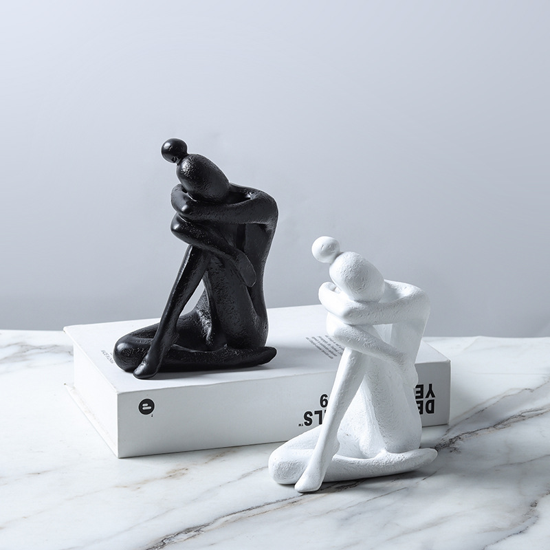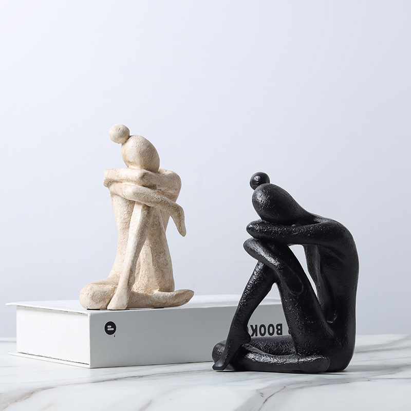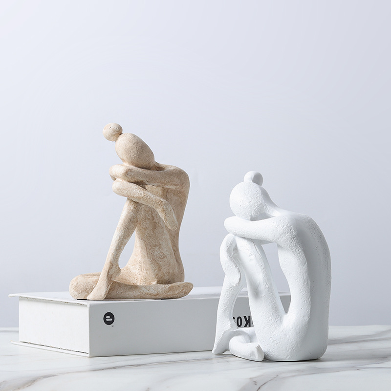 머리와 무릎을 껴안는 캐릭터 서점 소책자 조각 장식품 홈 모델 룸 쥬얼리에 묻힌 현대 북유럽 조용한 바람 수지