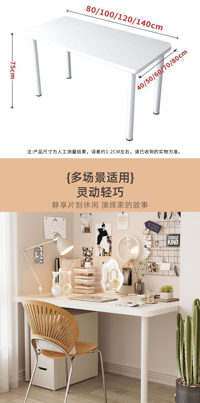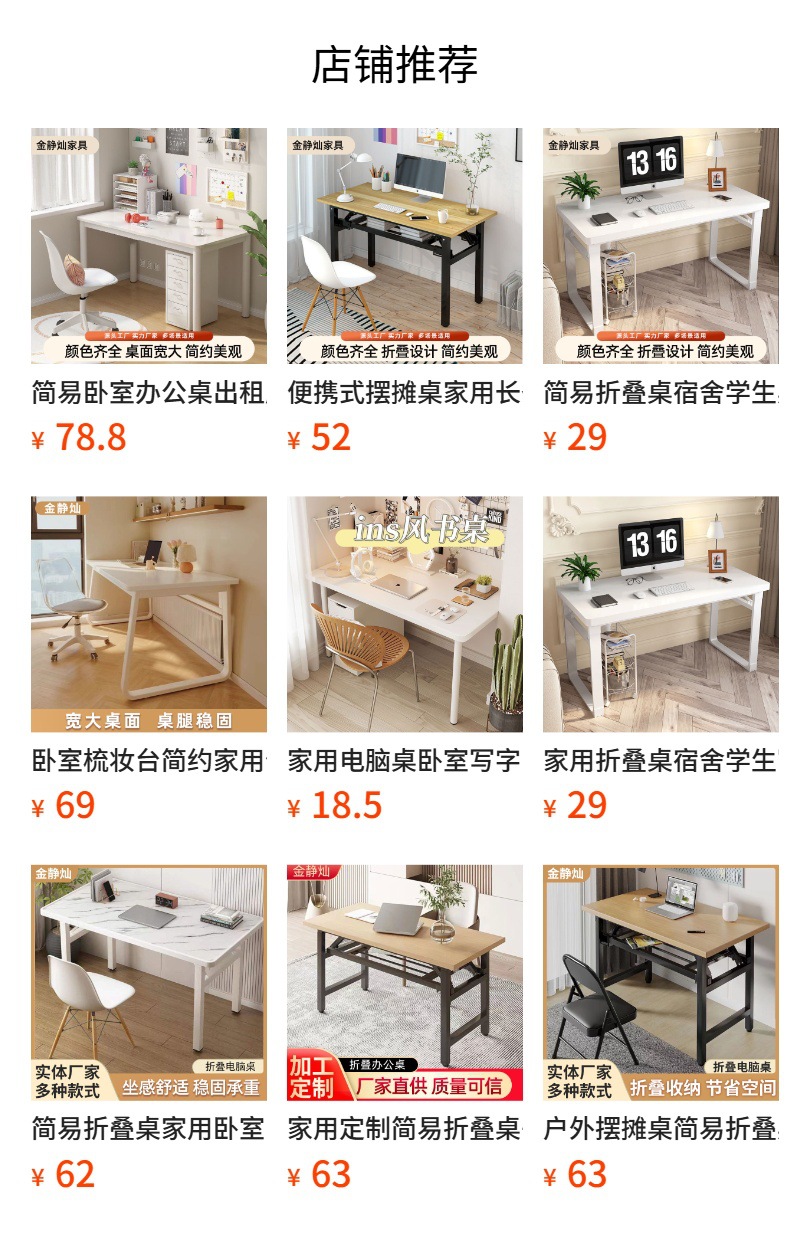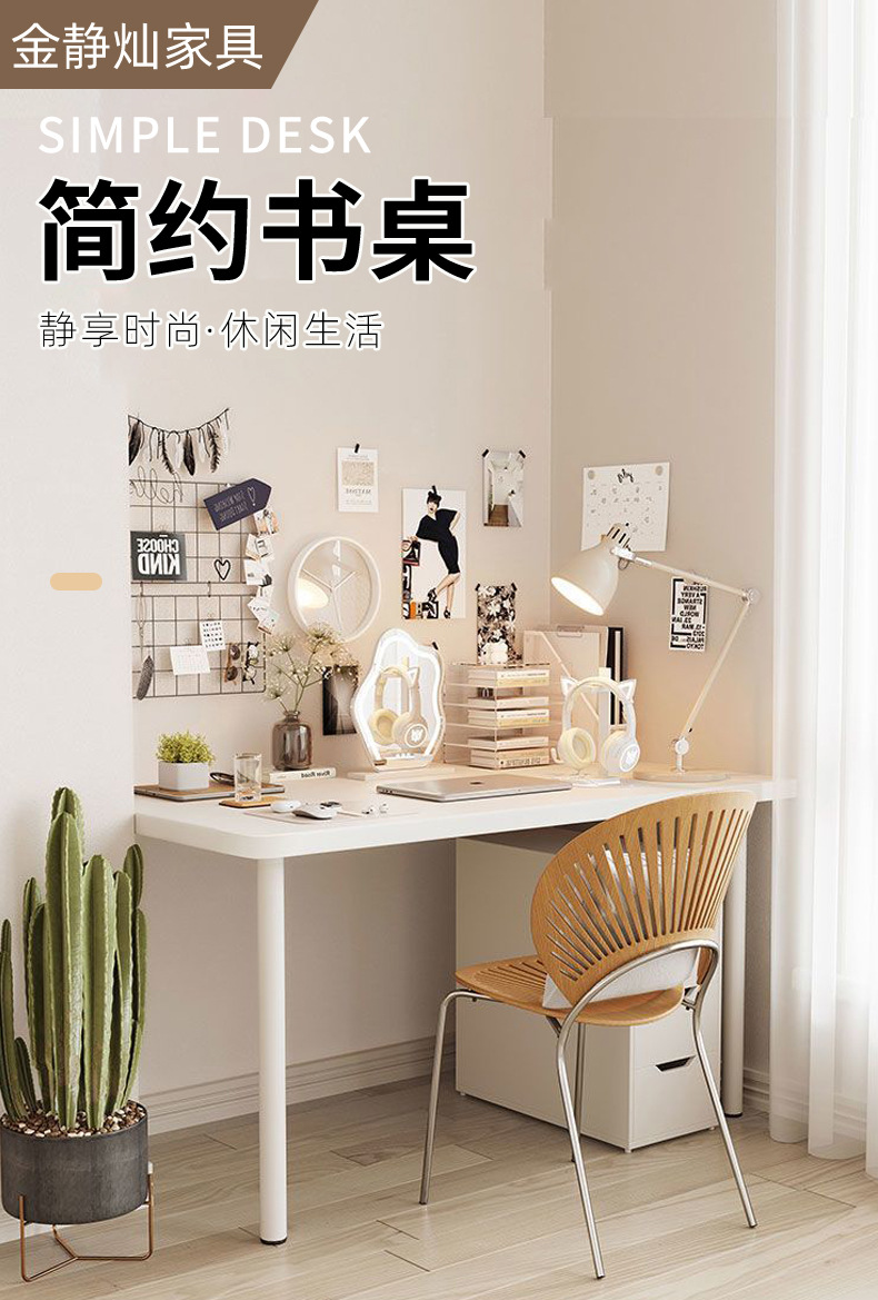 가정용 컴퓨터 책상, 침실 책상, 심플한 직사각형 모서리가 둥근 학습 테이블, 크로스보더 임대용 화장대스토어 가기