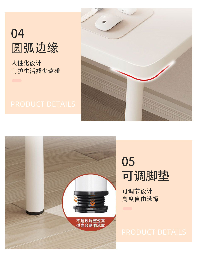 가정용 컴퓨터 책상, 침실 책상, 심플한 직사각형 모서리가 둥근 학습 테이블, 크로스보더 임대용 화장대