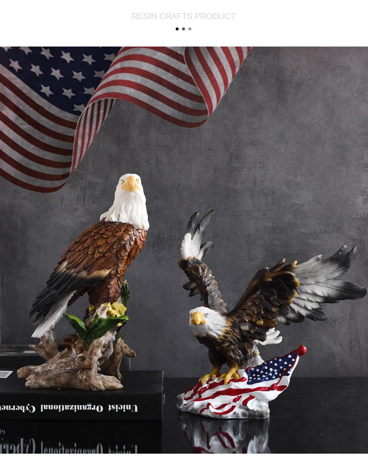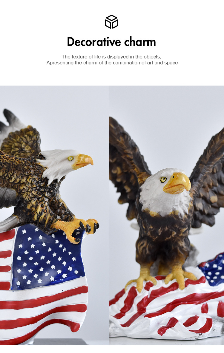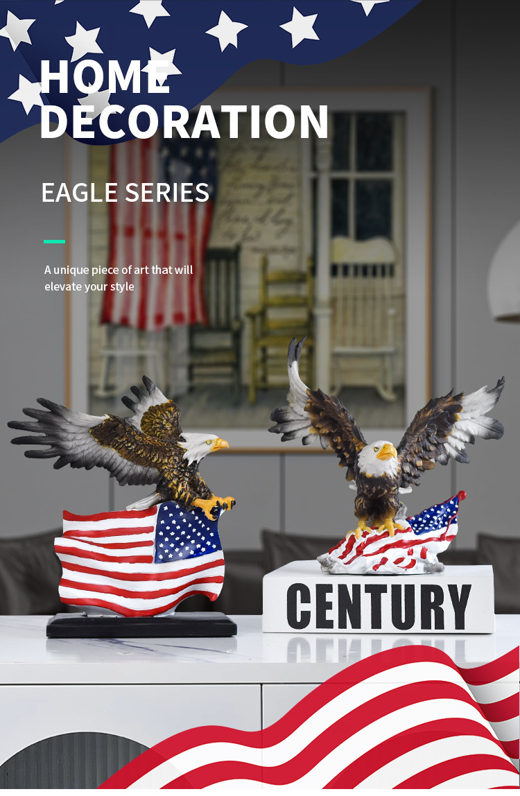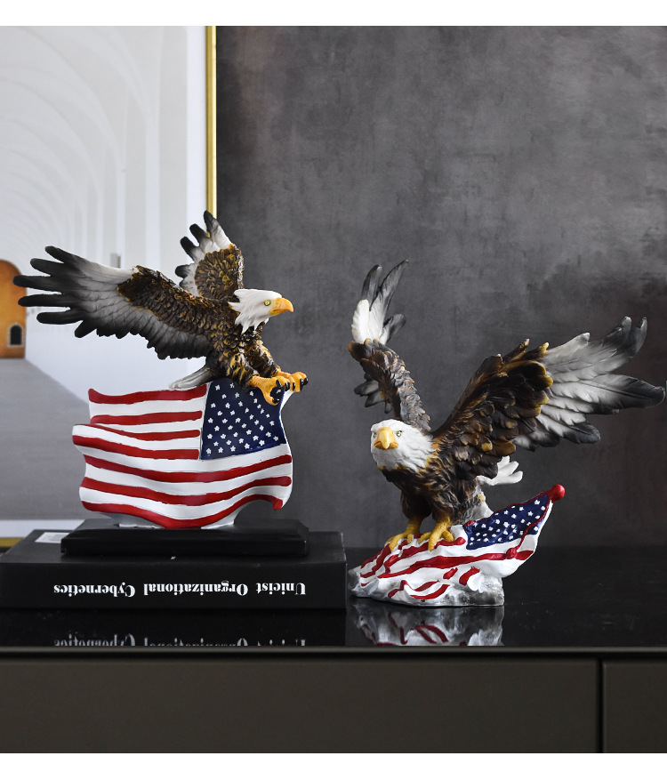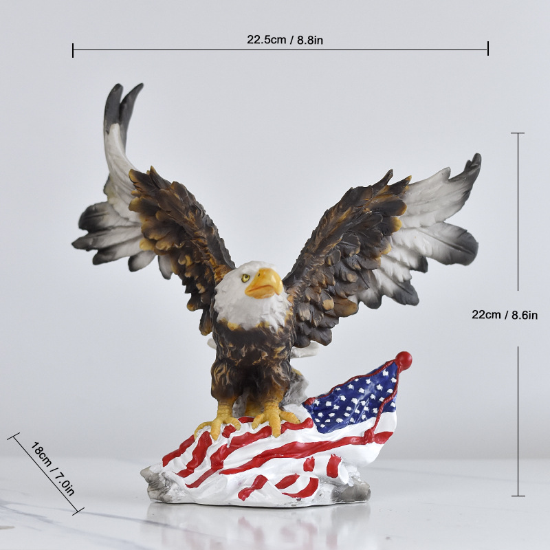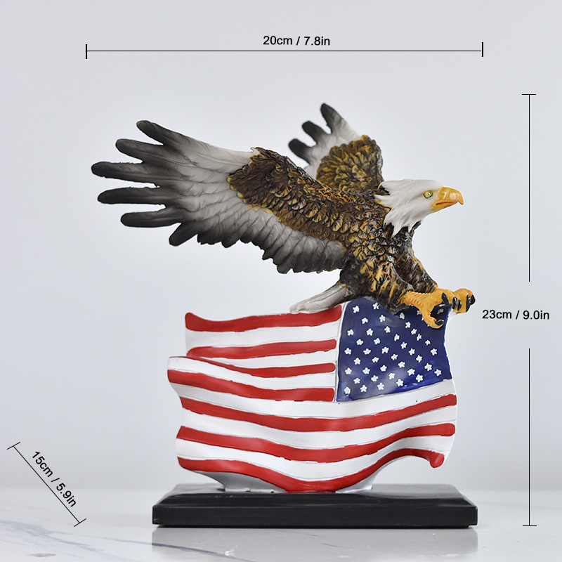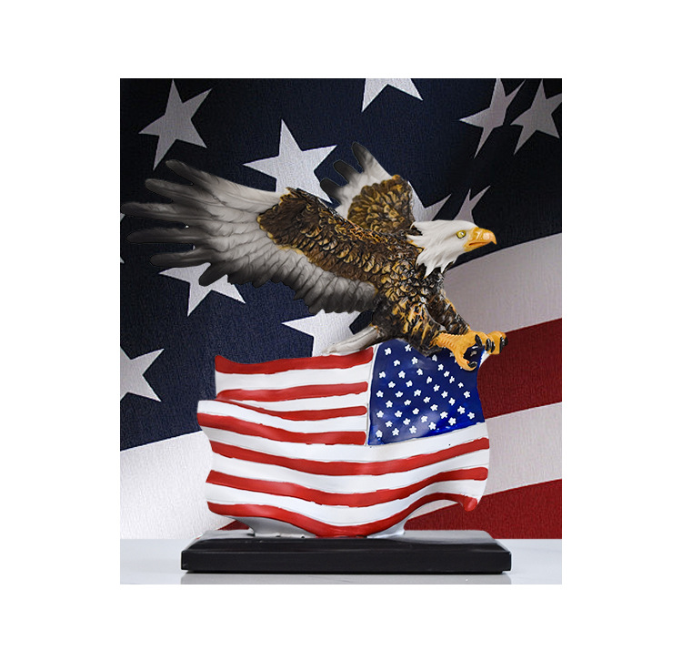 국경을 넘나드는 깃발을 펼치는 독수리 수지 공예품 장식품, 독립기념일 가정 거실 사무실 조각 장식품