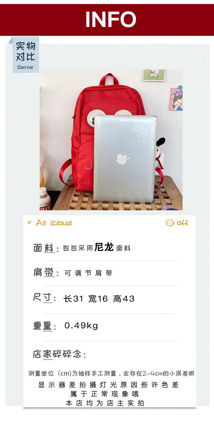 큰 눈 캐주얼 만화 배낭 도매 대용량 유행 단색 배낭 새로운 한국 스타일 중학생 학교 가방