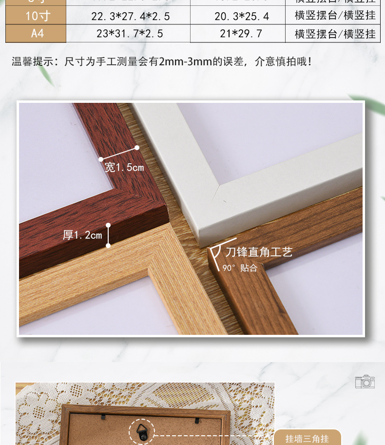 현대적이고 심플한 나뭇잎 사진 액자 수제 사진 액자 걸이형 또는 스탠드형 포토 프레임 도매 인스타 스타일 장식스토어 가기