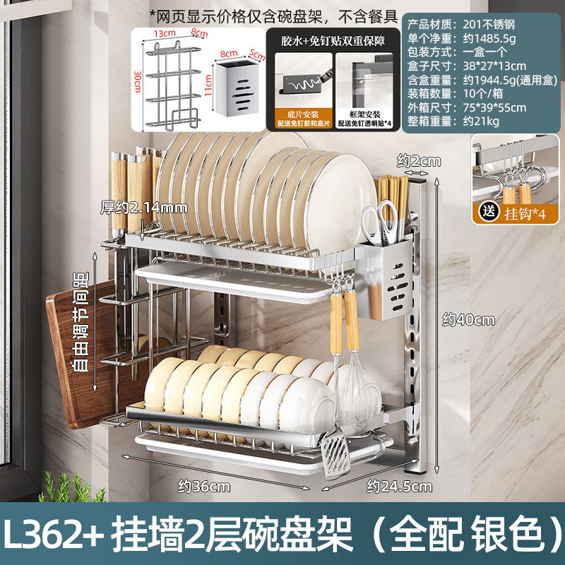 • L362 벽걸이 형 2 층 접시 랙 (완전 실버 장착)