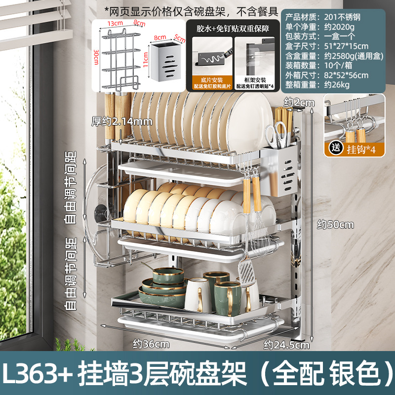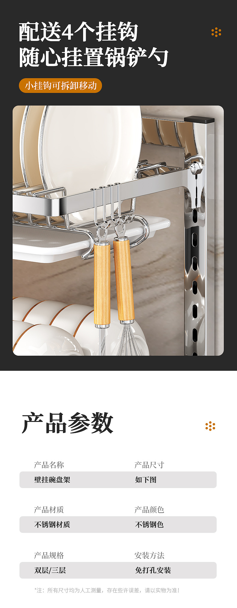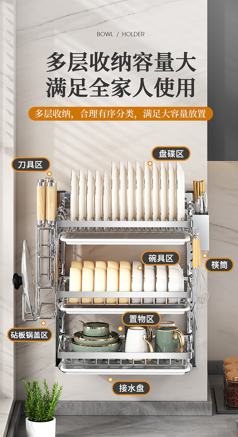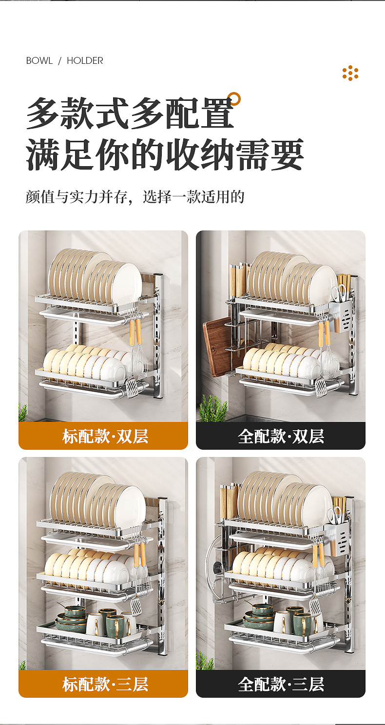 不锈钢厨房置物架壁挂碗碟架刀筷沥水架免打孔晾碗放碗厨房用品
