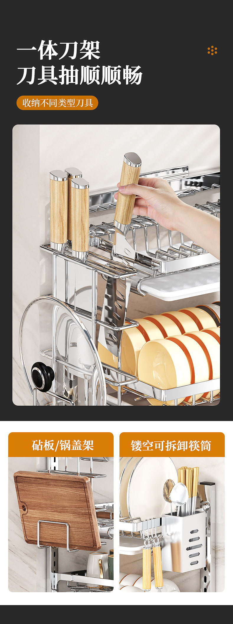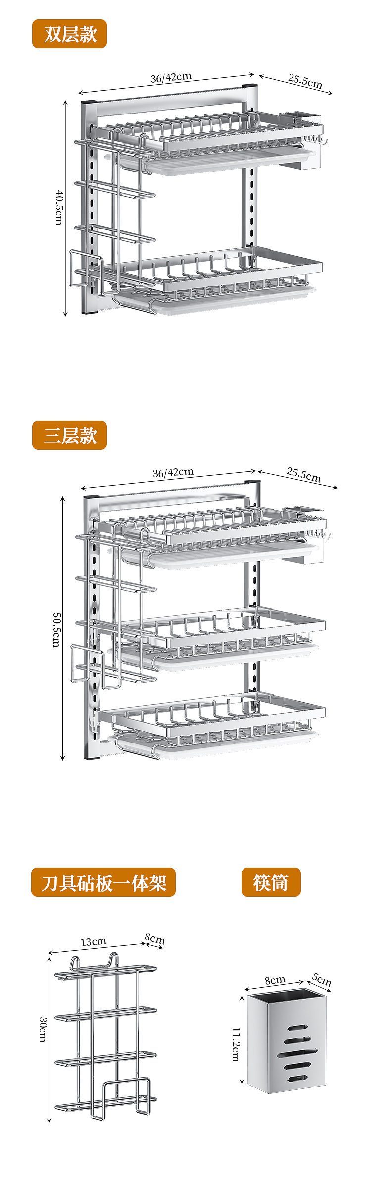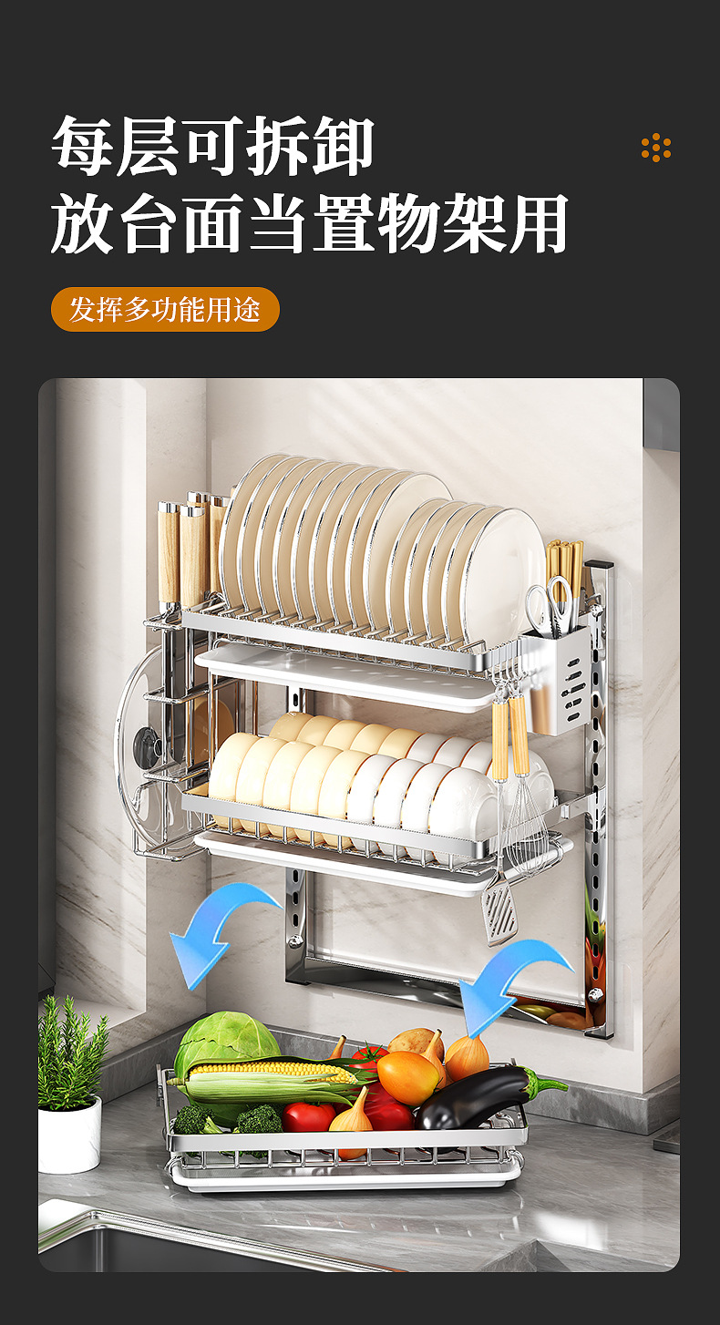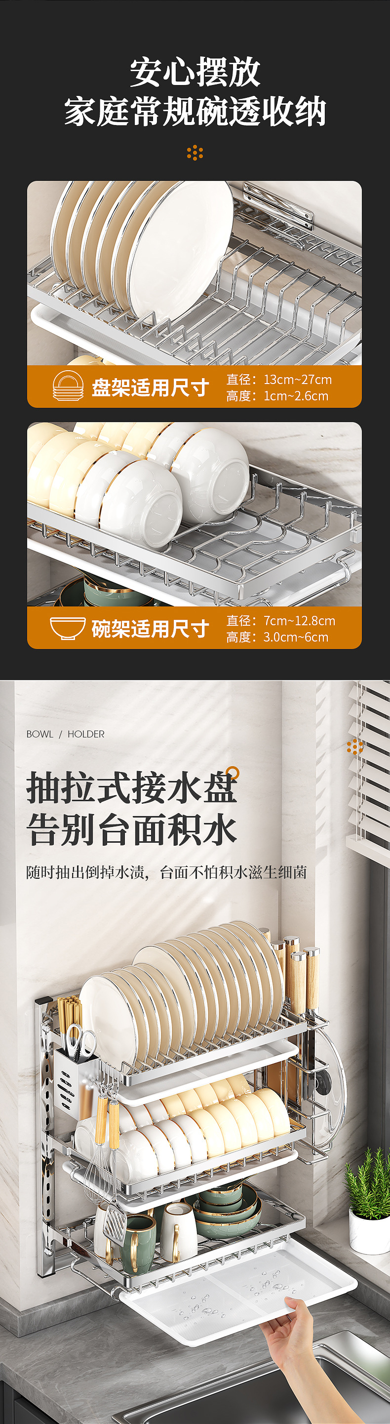 不锈钢厨房置物架壁挂碗碟架刀筷沥水架免打孔晾碗放碗厨房用品
