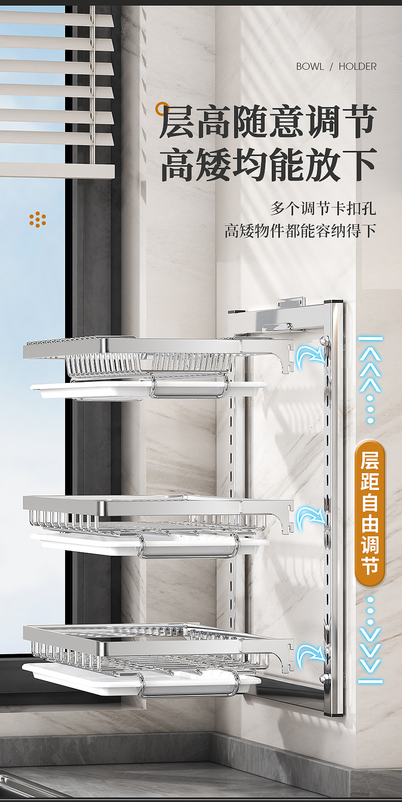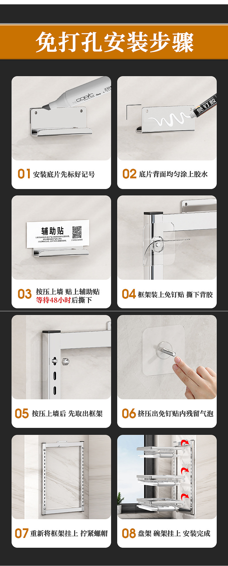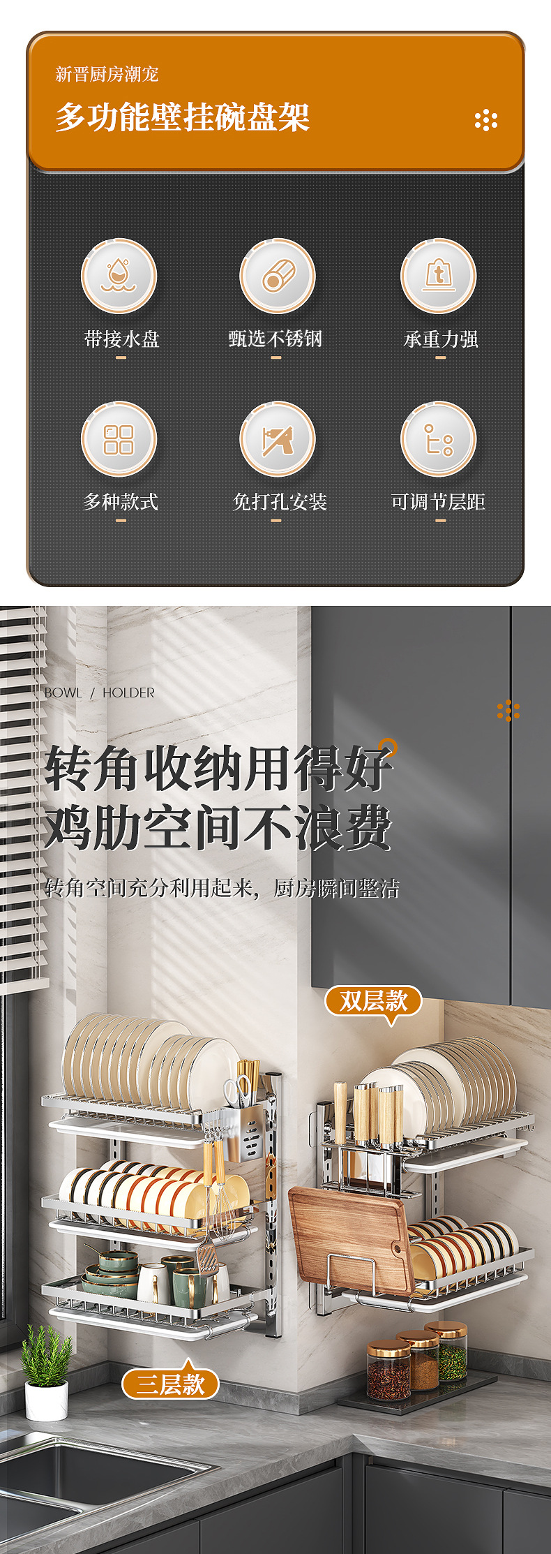 不锈钢厨房置物架壁挂碗碟架刀筷沥水架免打孔晾碗放碗厨房用品