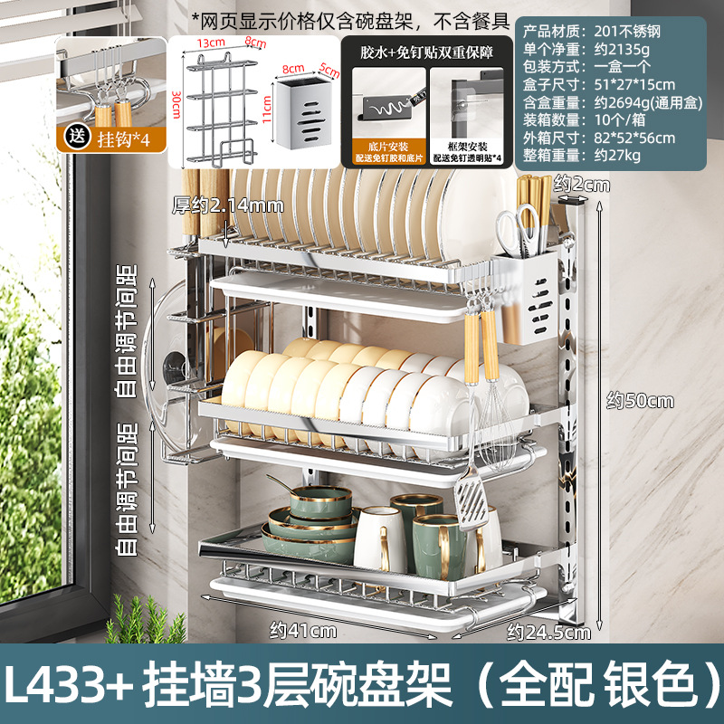 • L433 벽걸이 형 3 층 접시 랙 (완전 실버 장착)