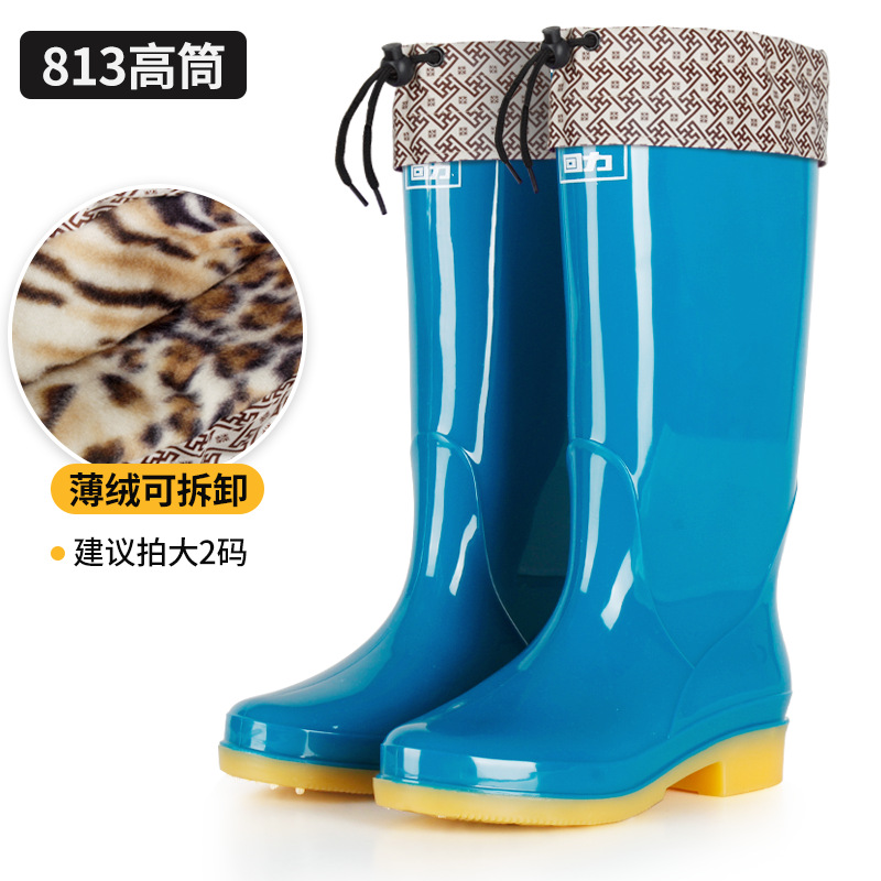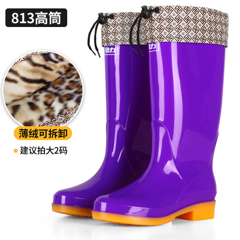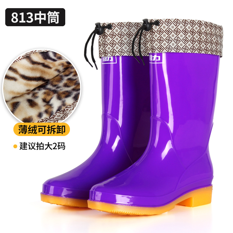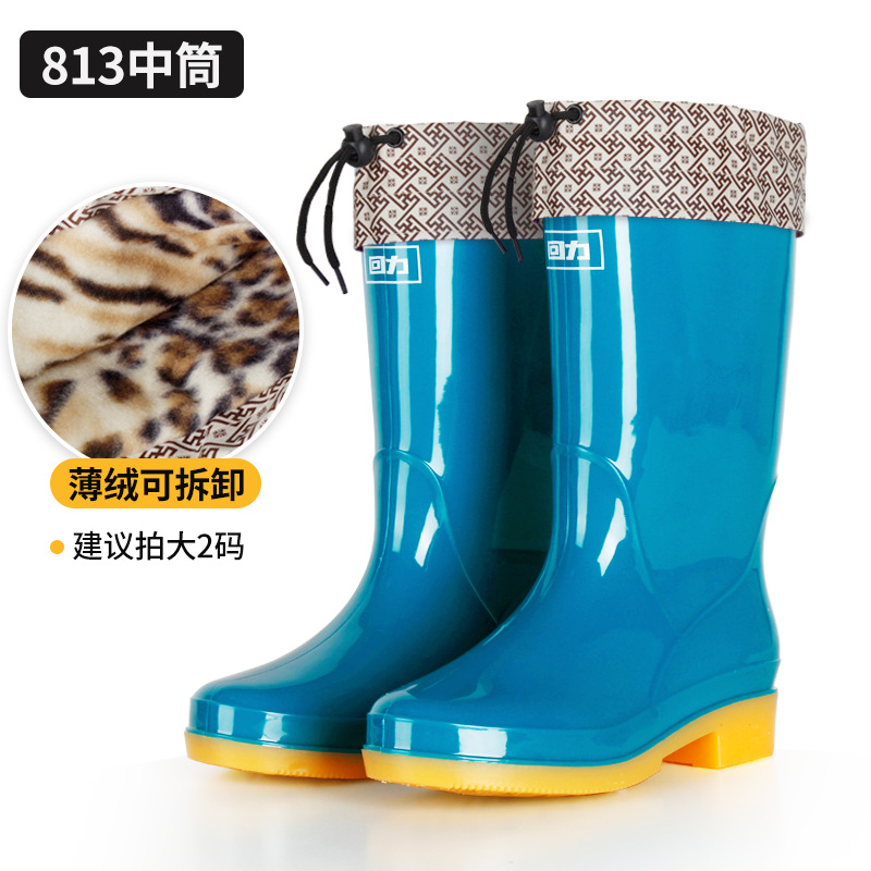 상하이 Huili 813 장화 패션 여성 중간 배럴 장화 비 슬립 내마모성 소 힘줄 바닥 컬러 물 신발 도매