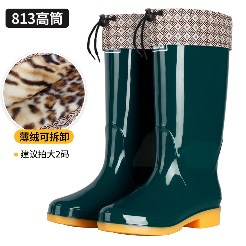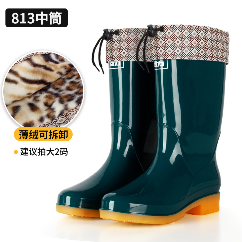 상하이 Huili 813 장화 패션 여성 중간 배럴 장화 비 슬립 내마모성 소 힘줄 바닥 컬러 물 신발 도매스토어 가기