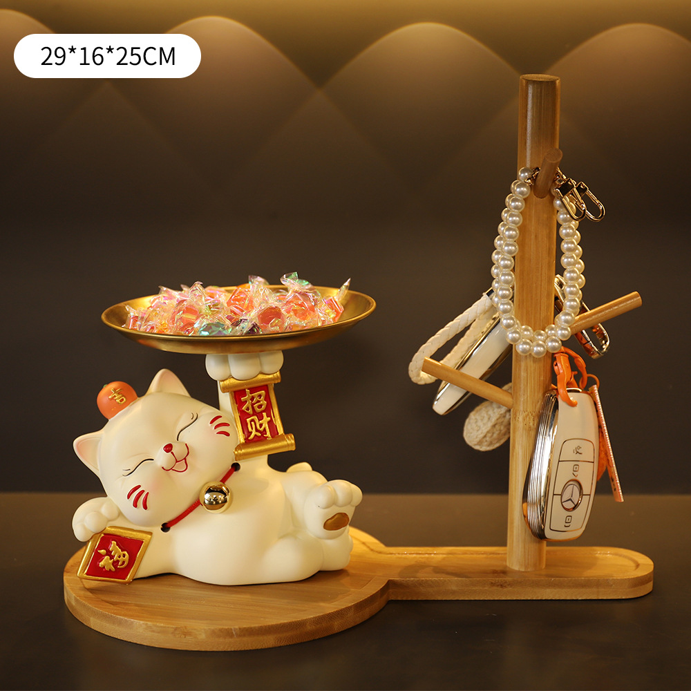 • 운 좋게도 고양이 장식품 베이지 라켓베이스