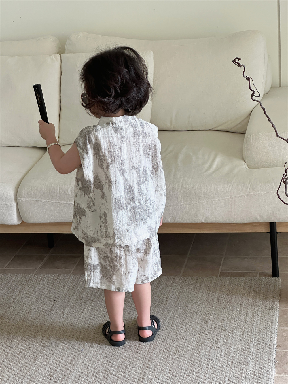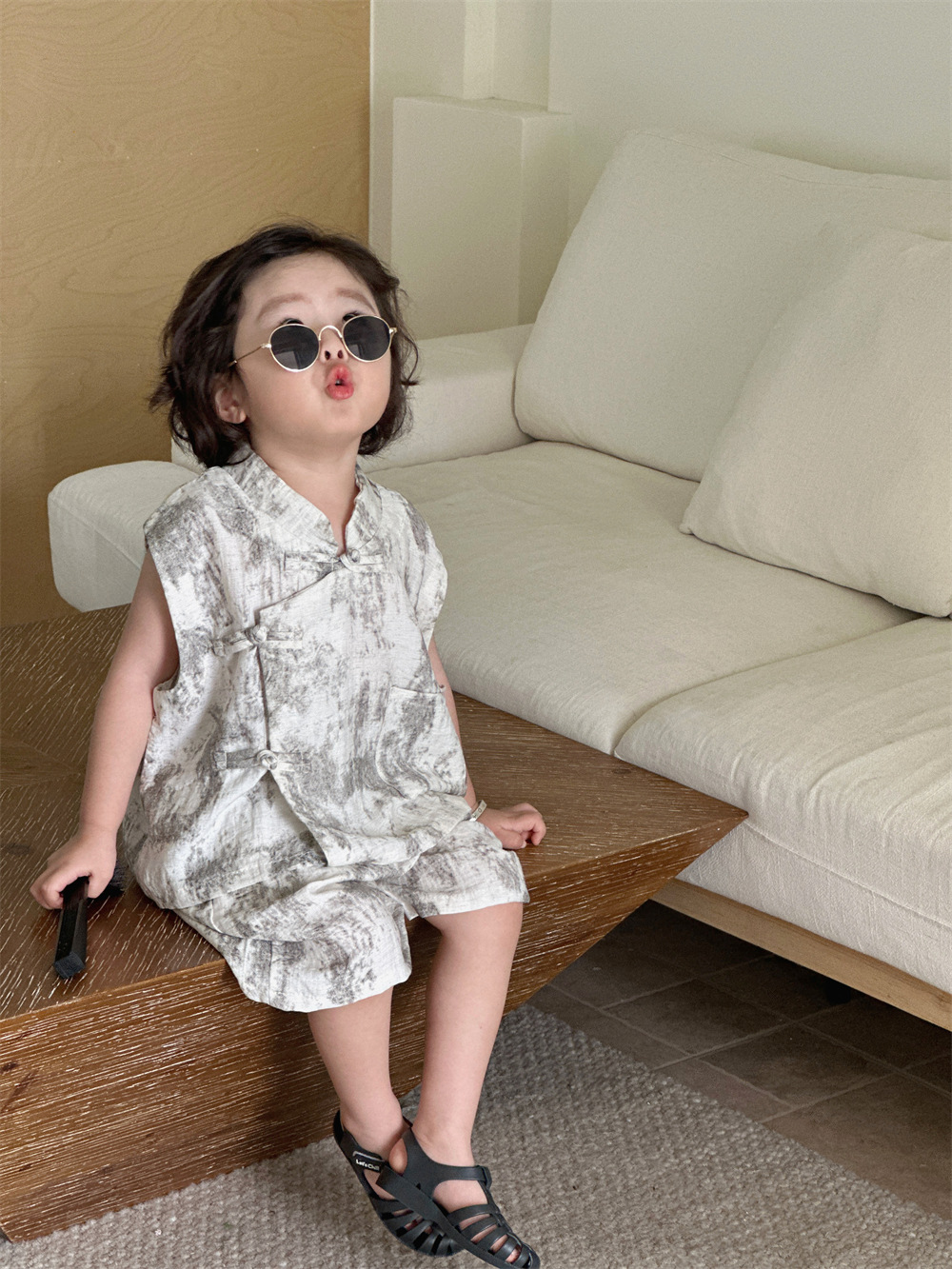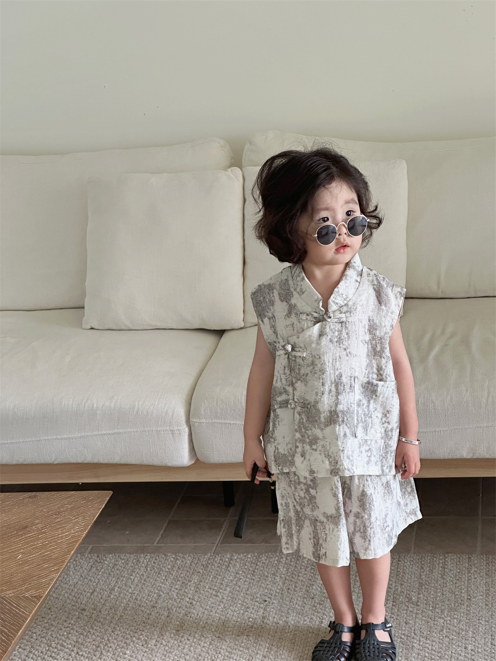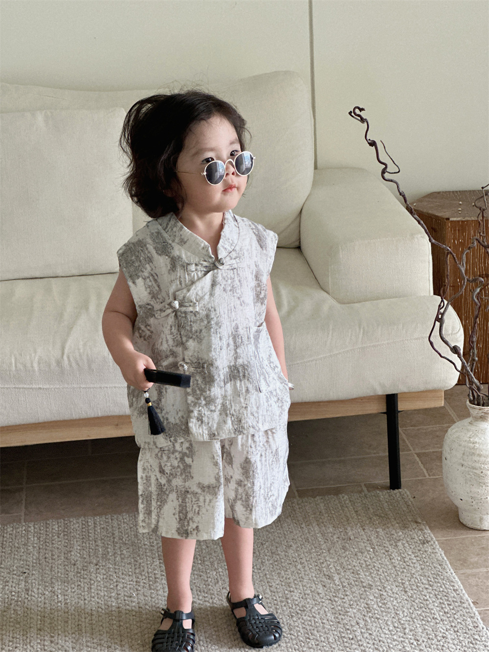 강남 젊은 마스터 소년 세트 Guofeng 2024 여름 새로운 소년 새로운 중국 잉크 중국 스타일 두 조각스토어 가기