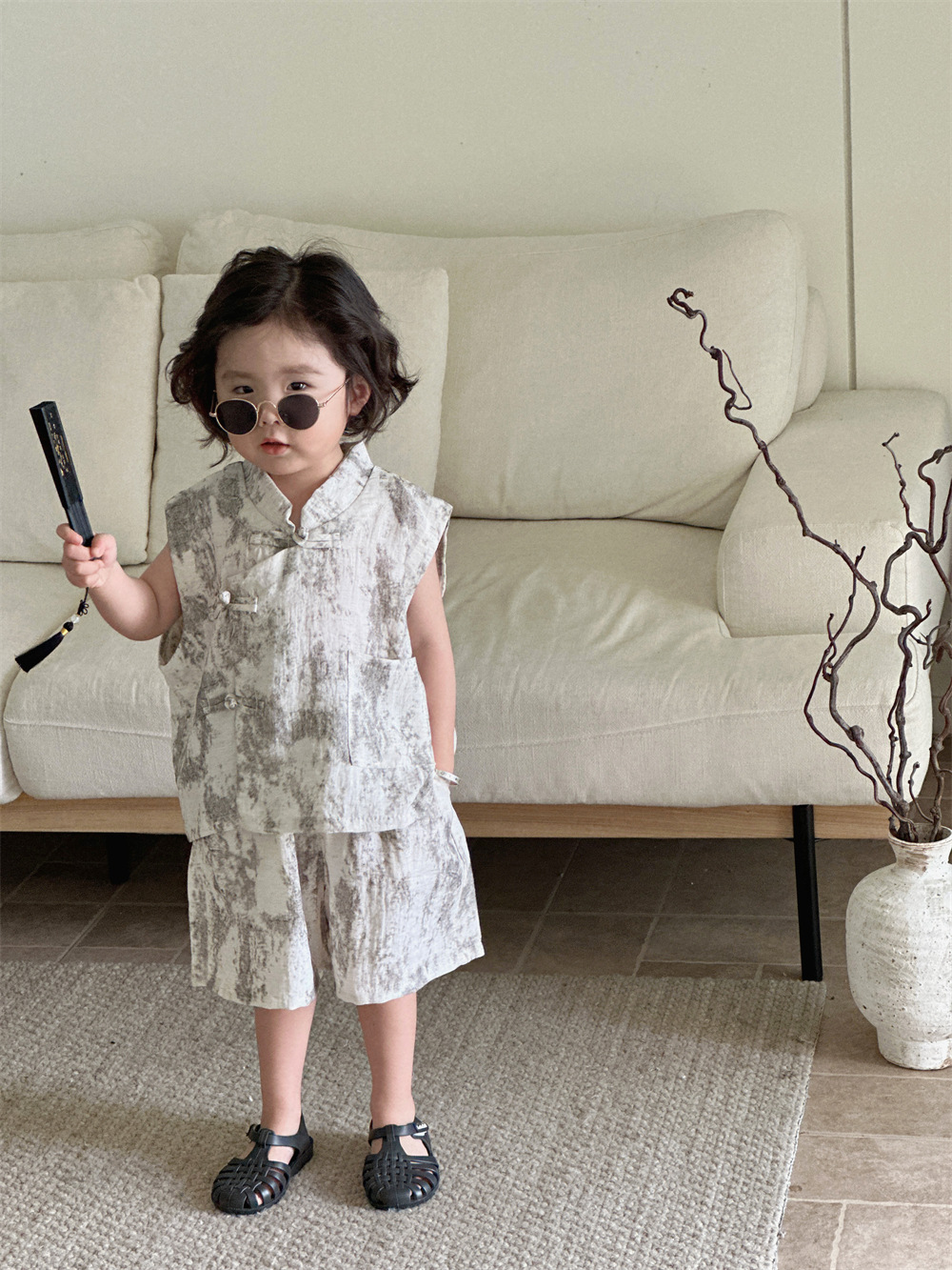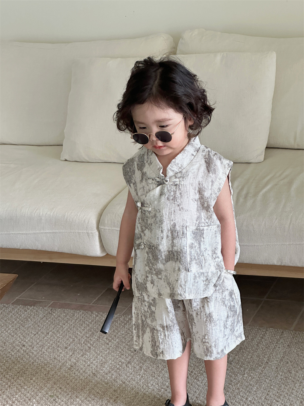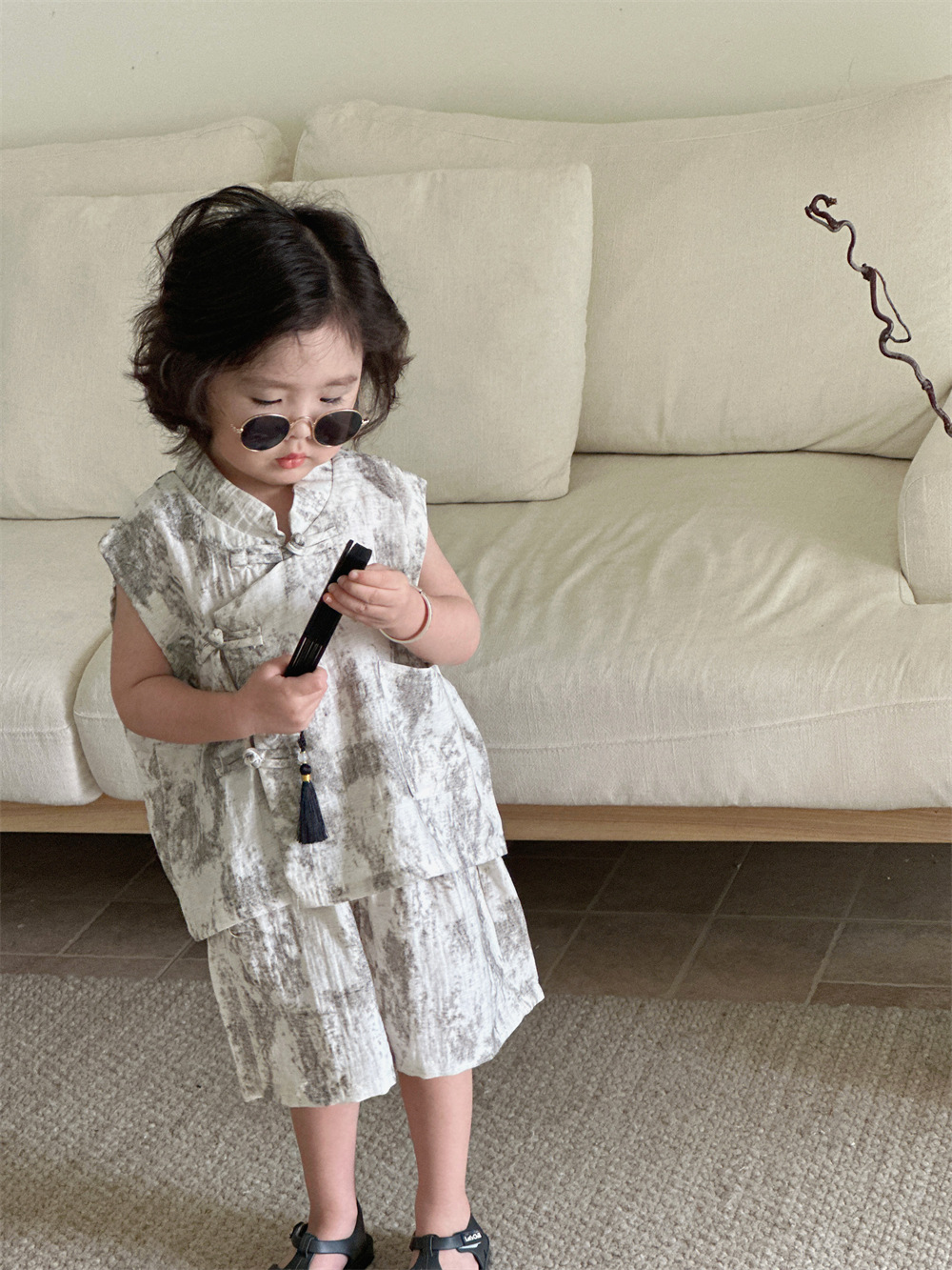 강남 젊은 마스터 소년 세트 Guofeng 2024 여름 새로운 소년 새로운 중국 잉크 중국 스타일 두 조각스토어 가기