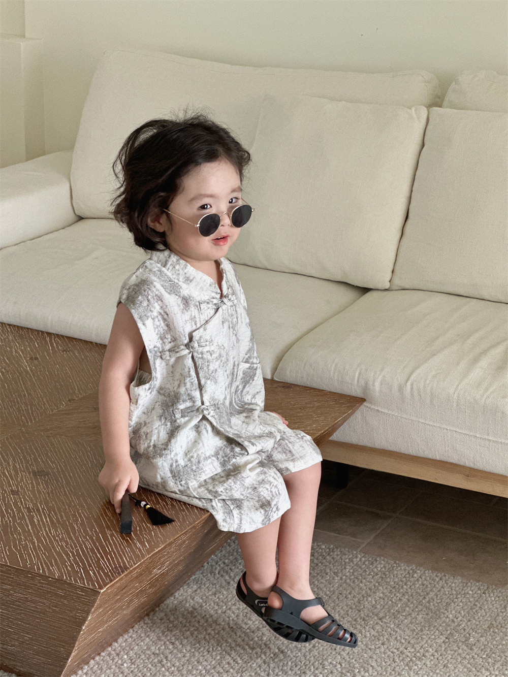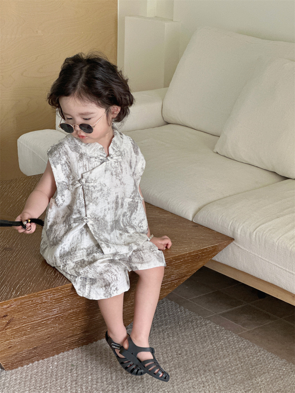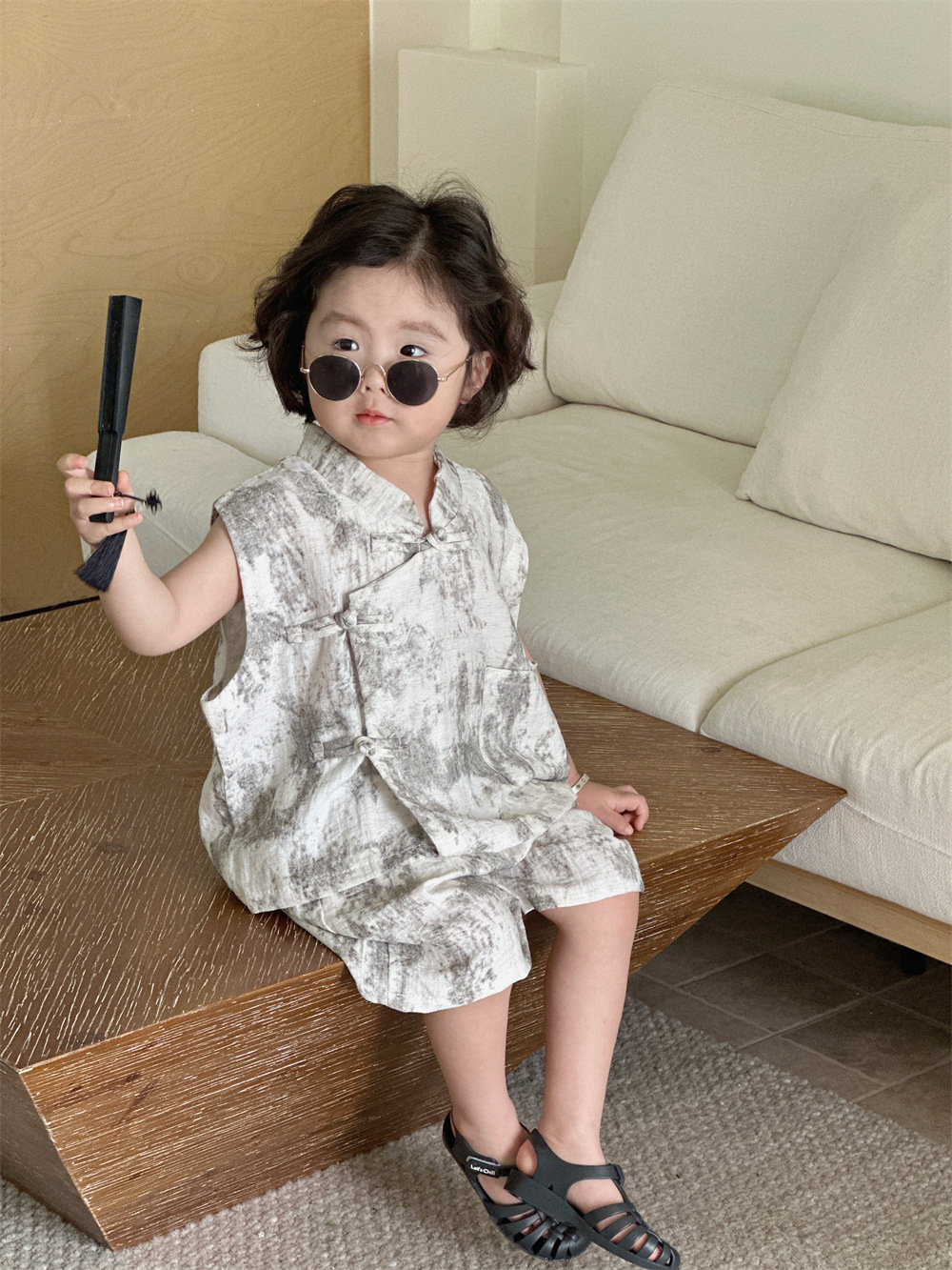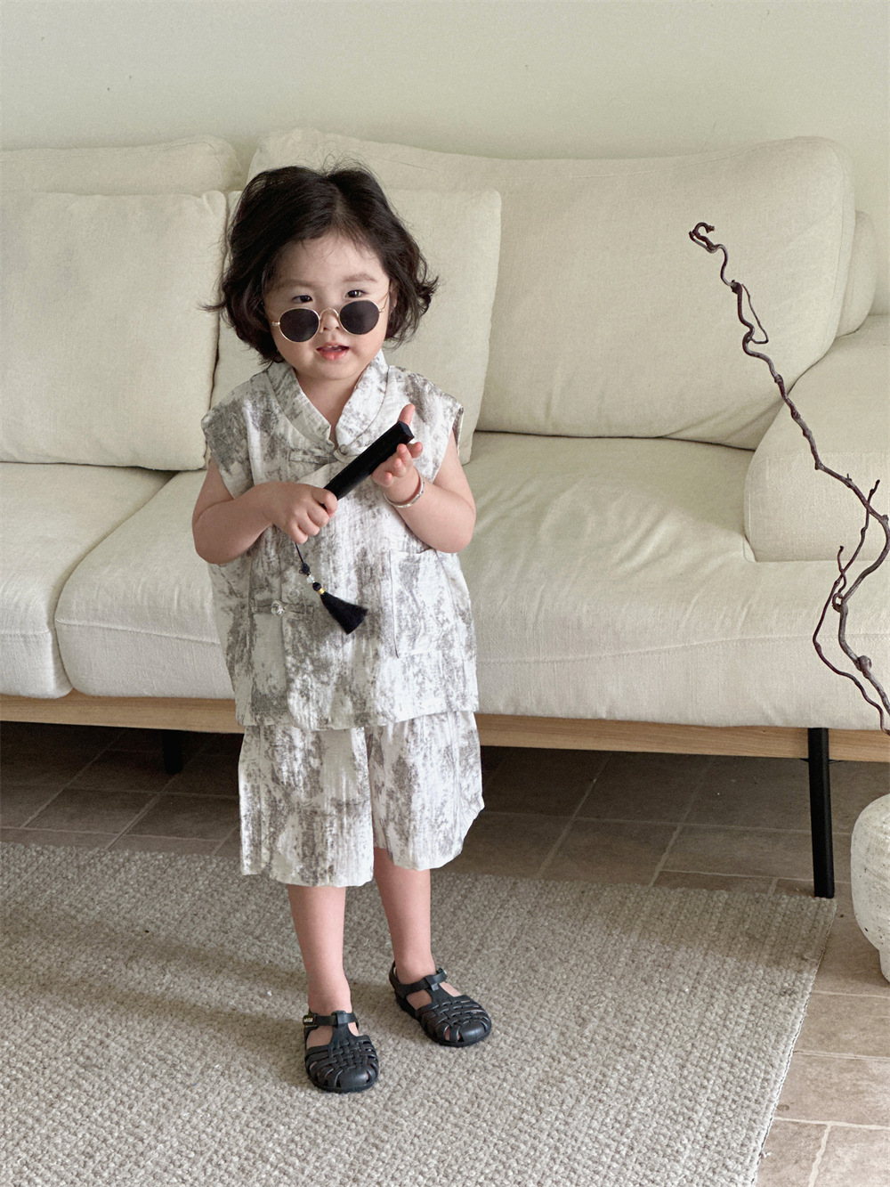 강남 젊은 마스터 소년 세트 Guofeng 2024 여름 새로운 소년 새로운 중국 잉크 중국 스타일 두 조각스토어 가기