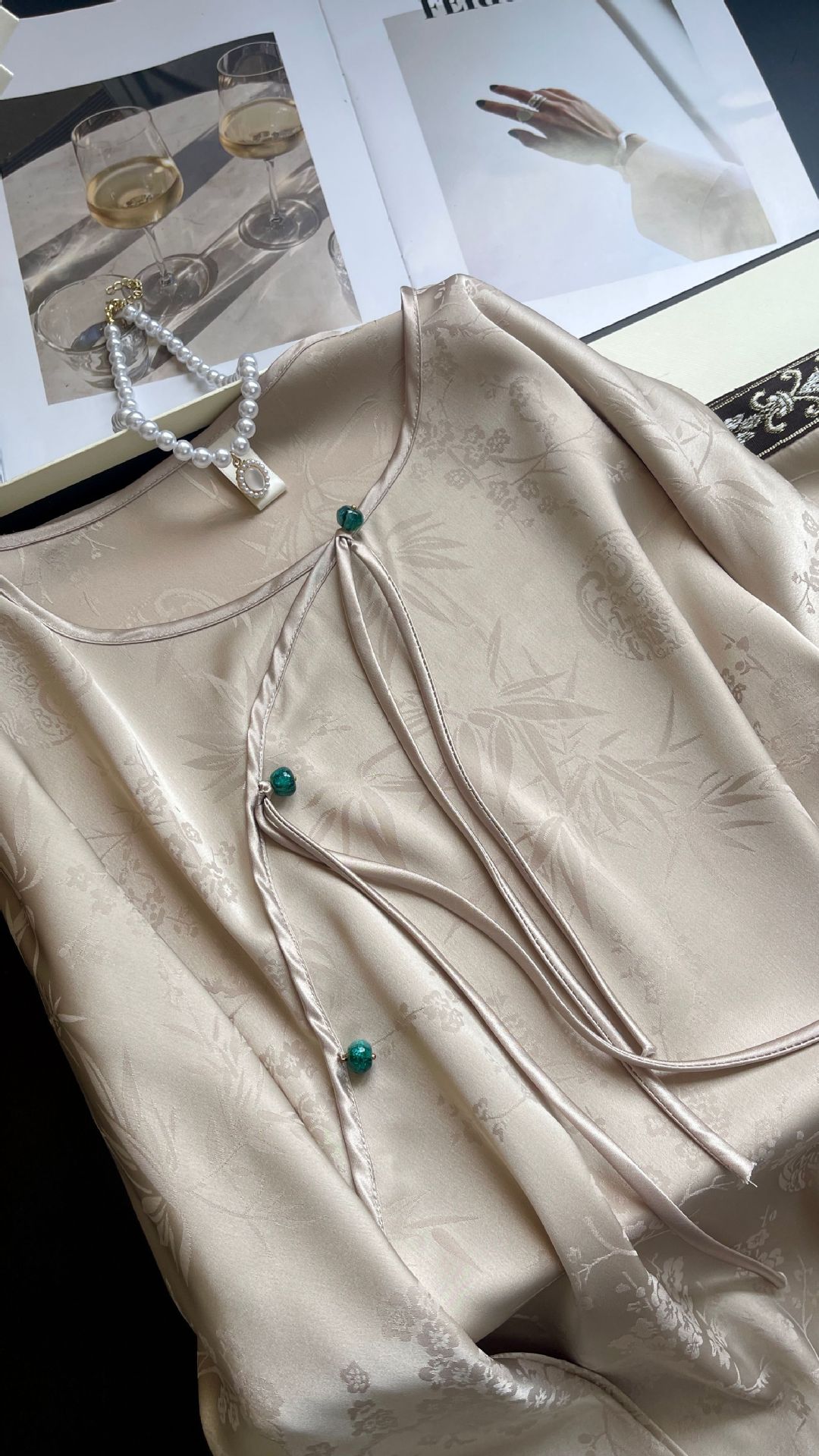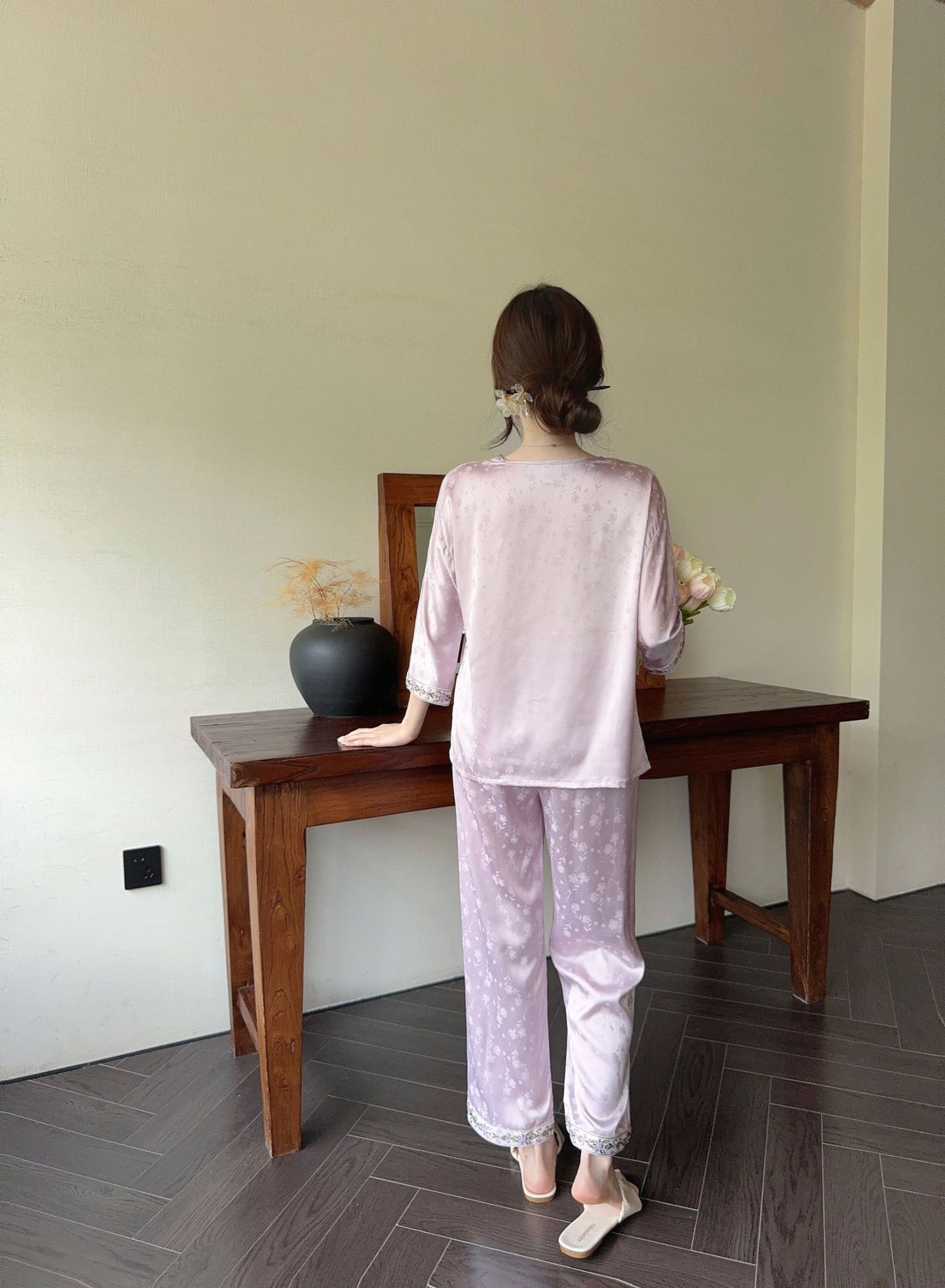 골든 궈펑 아이스 실크 파자마 여성의 얇은 새로운 중국 스타일 홈 의류 세트 빈티지 자카드 하이 엔드 웨어러블스토어 가기
