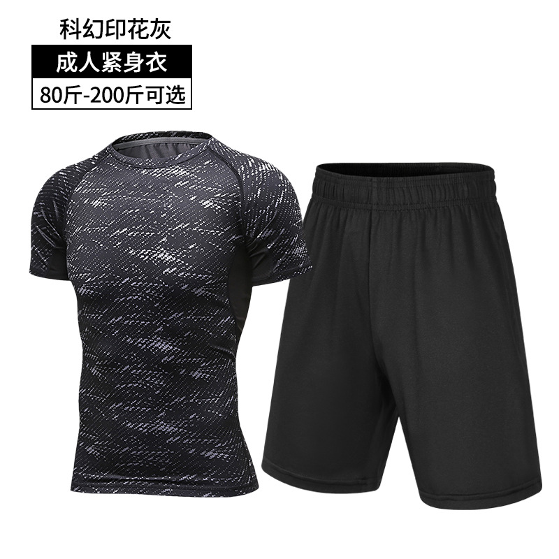 체육관 스포츠 세트 남자 여름 타이츠 달리기 요가 옷 농구 의류 장비 야간 훈련 아침 달리기