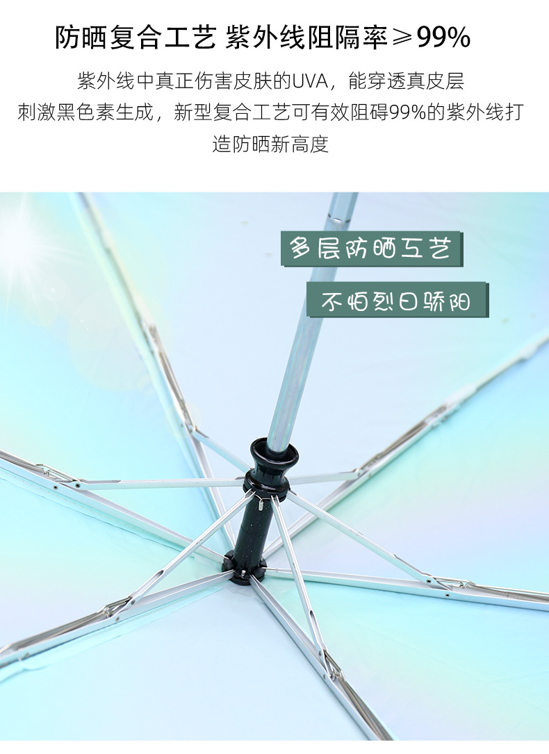 일본과 한국 스타일 초경량 자동 태양 보호 고 부가가치 여성 매직 컬러 그라디언트 초박형 접는 태양 우산 3 배 써니 우산