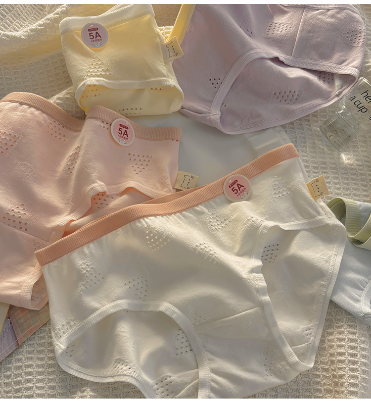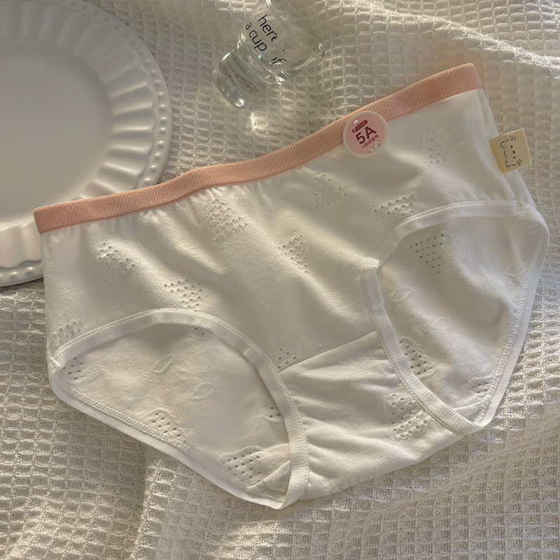 신선한 콘트라스트 컬러 학생면 편안한 피부 친화적 인 브리프 중반 허리 탄성 100 면 5A 하단 크로치 팬티