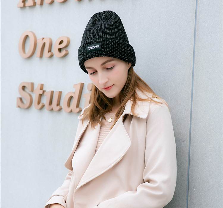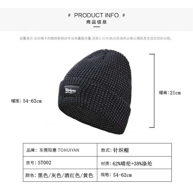 TOHUIYAN 반사 니트 모자 야간 야외 스포츠 모직 모자 가을, 겨울 따뜻한 플러스 벨벳 방한 모자