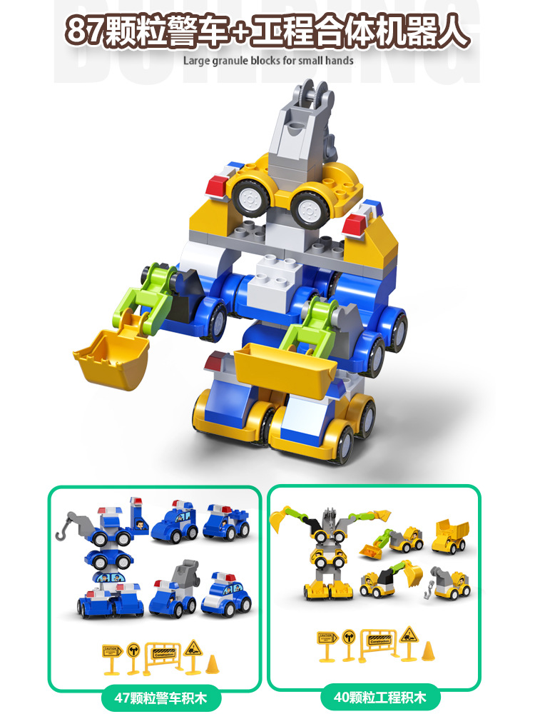 어린이 대형 입자 변수 로봇 퍼즐 지능 개발 뇌 조립 건물 블록 여성 및 소년 장난감 3 ~ 6 세