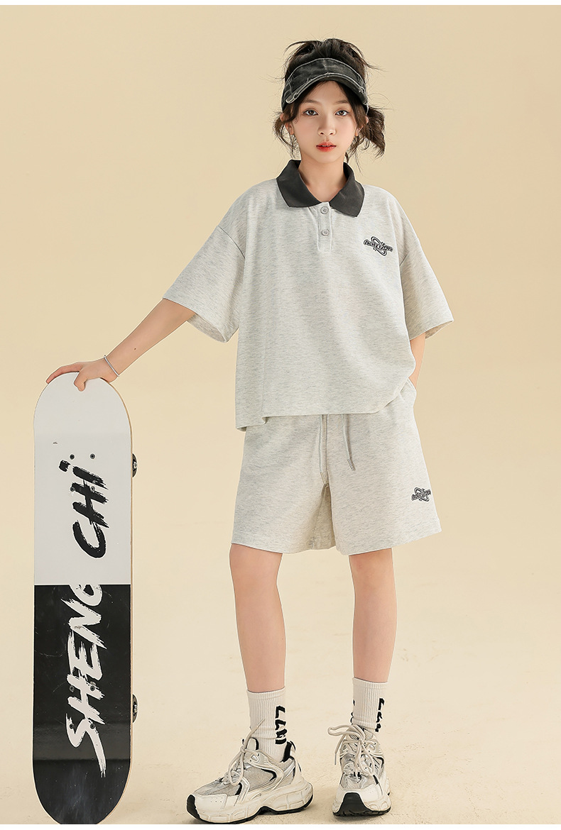 여자 세트 여름 2024 새로운 여름 어린이 캐주얼 반팔 여름 중학교 서양식 반바지 투피스 세트스토어 가기