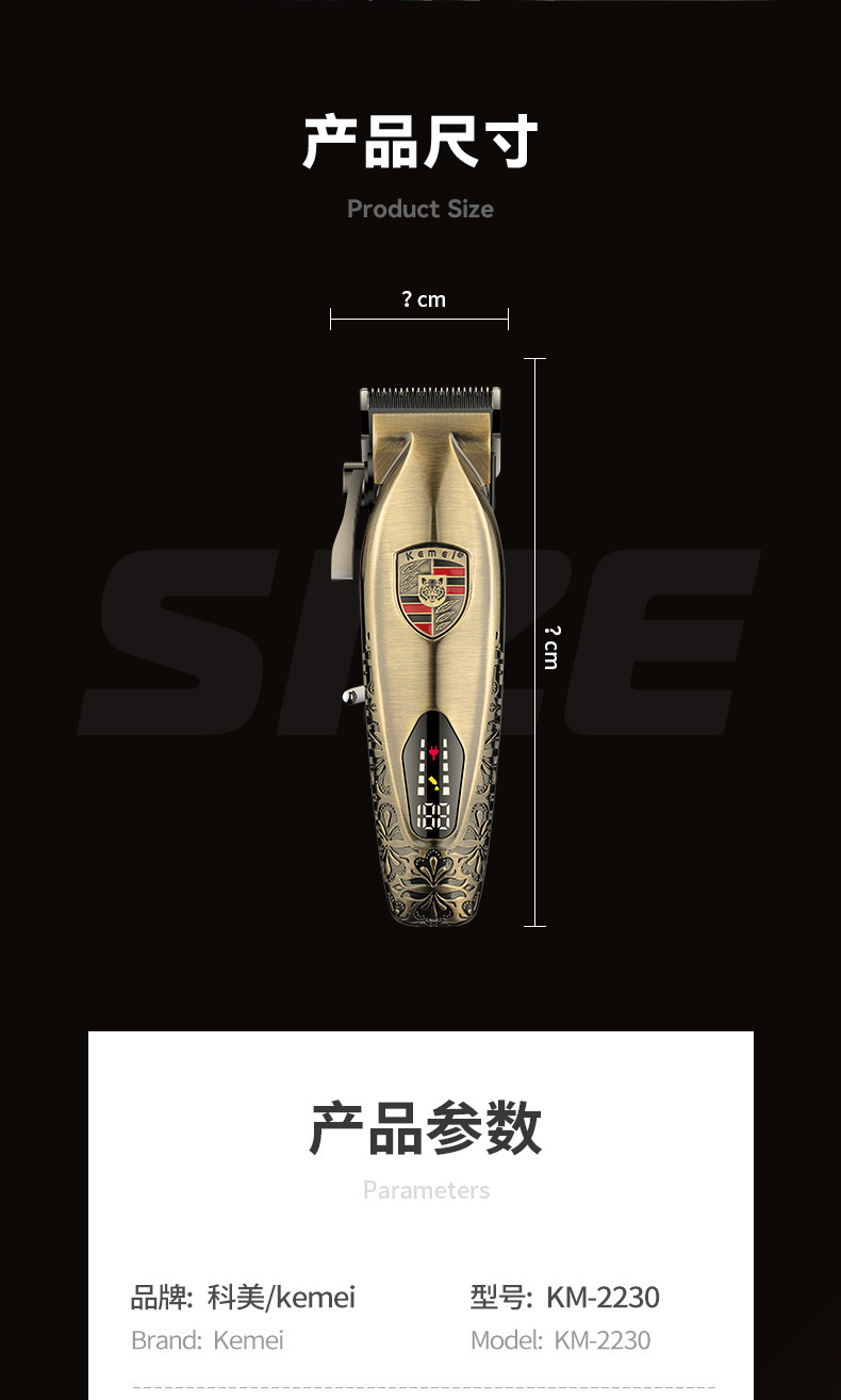 Kemei KM-2230 새로운 머리 깎기 전기 면도기 LED 디지털 디스플레이 머리 깎기 미용실 특수 전기 머리 깎기