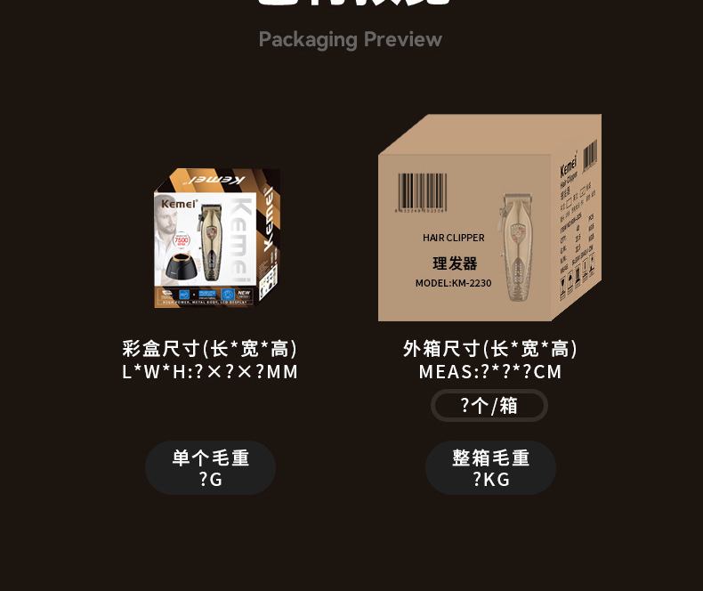 Kemei KM-2230 새로운 머리 깎기 전기 면도기 LED 디지털 디스플레이 머리 깎기 미용실 특수 전기 머리 깎기스토어 가기