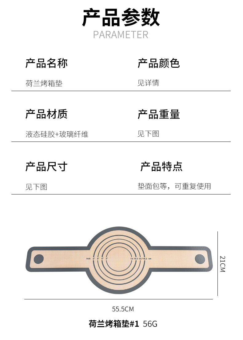 硅胶烘焙长柄垫面包吊带荷兰烤箱垫 硅胶长柄烤垫荷兰烤箱垫锅垫