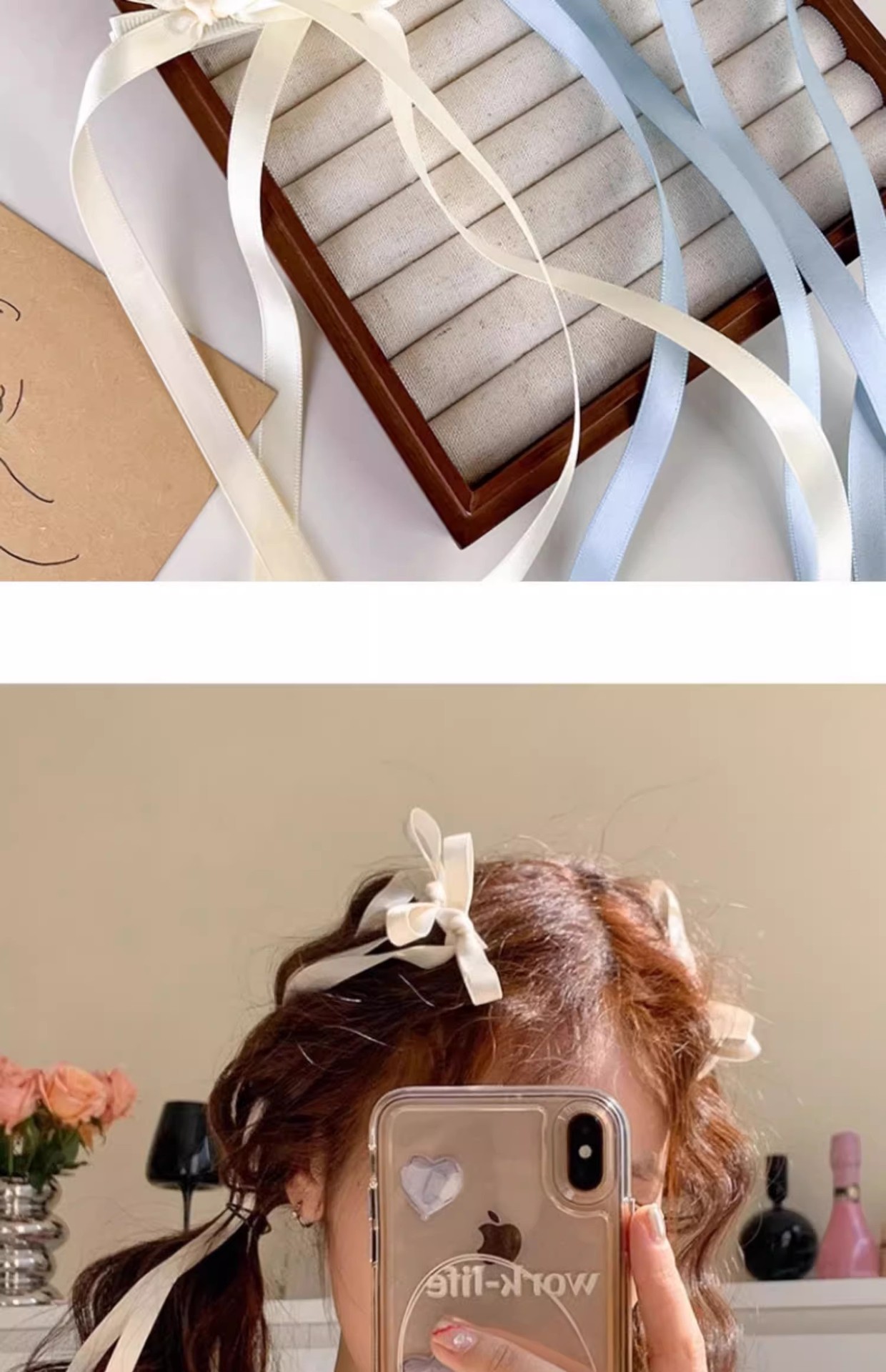헤어 리본 넥타이 헤어 활 헤어핀 화이트 더블 포니 테일 헤어 액세서리 여성 헤어 타이 리본 헤어 밴드 헤드웨어