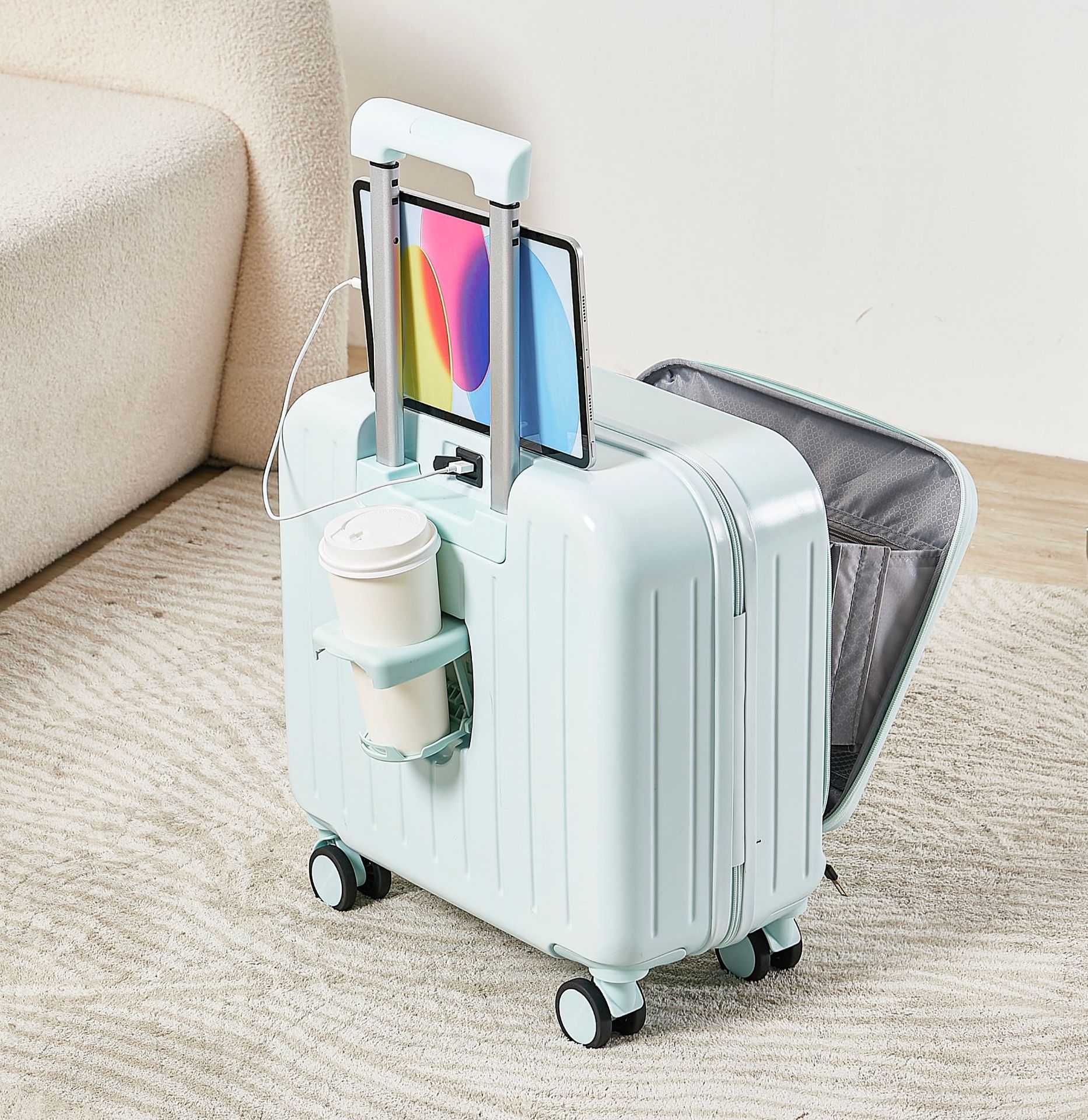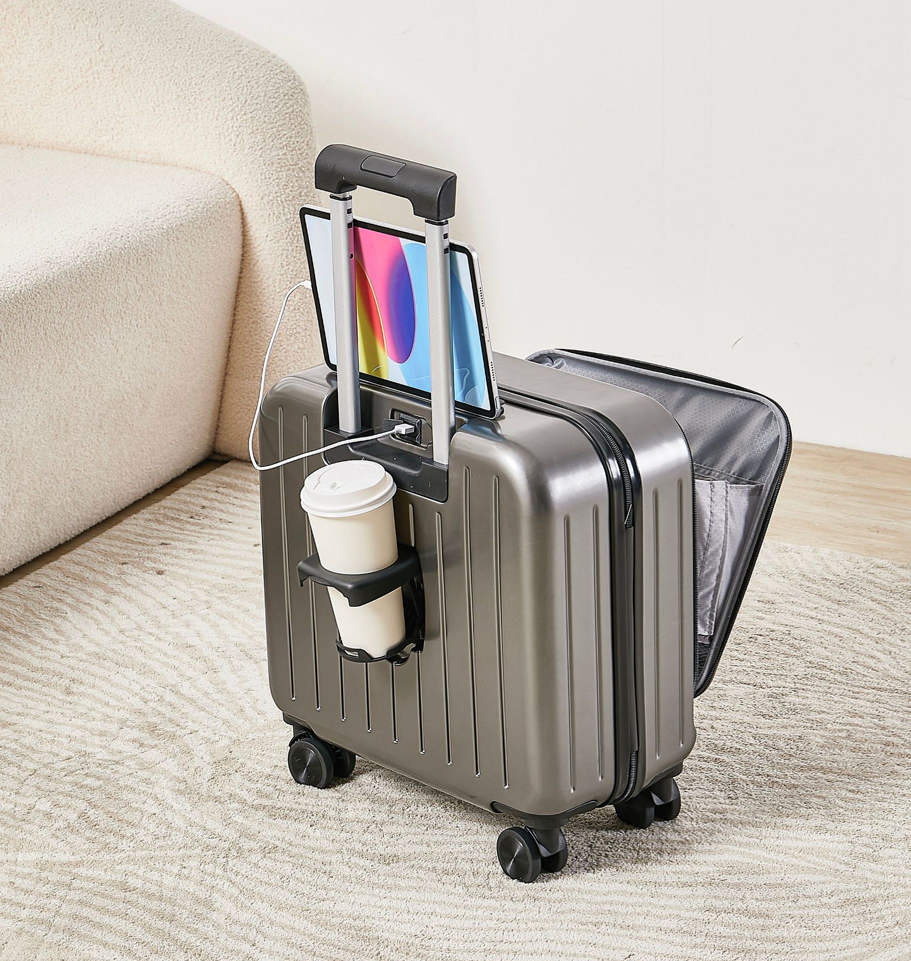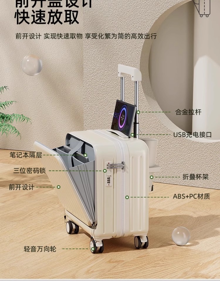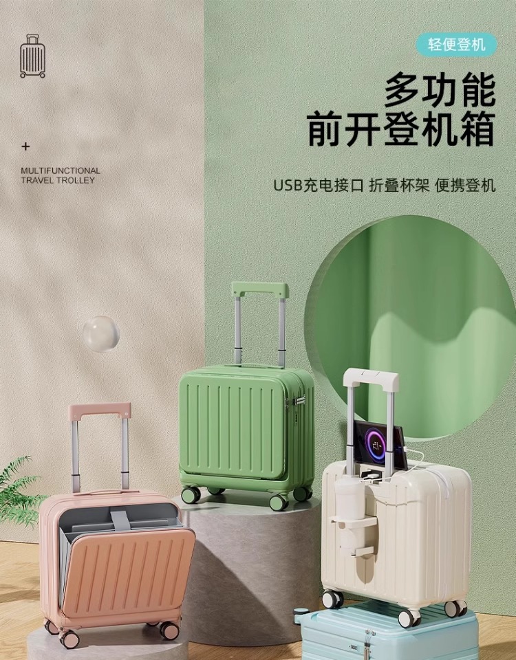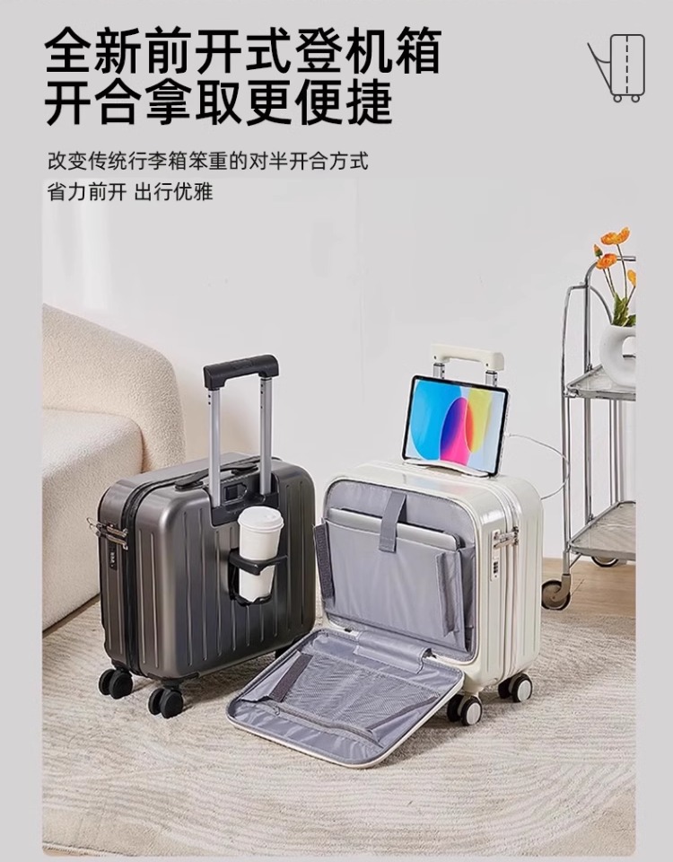 18 인치 휴대용 탑승 상자 전면 개방 다기능 수하물 소형 트롤리 케이스 남성 비밀번호 가방 여성 20 인치