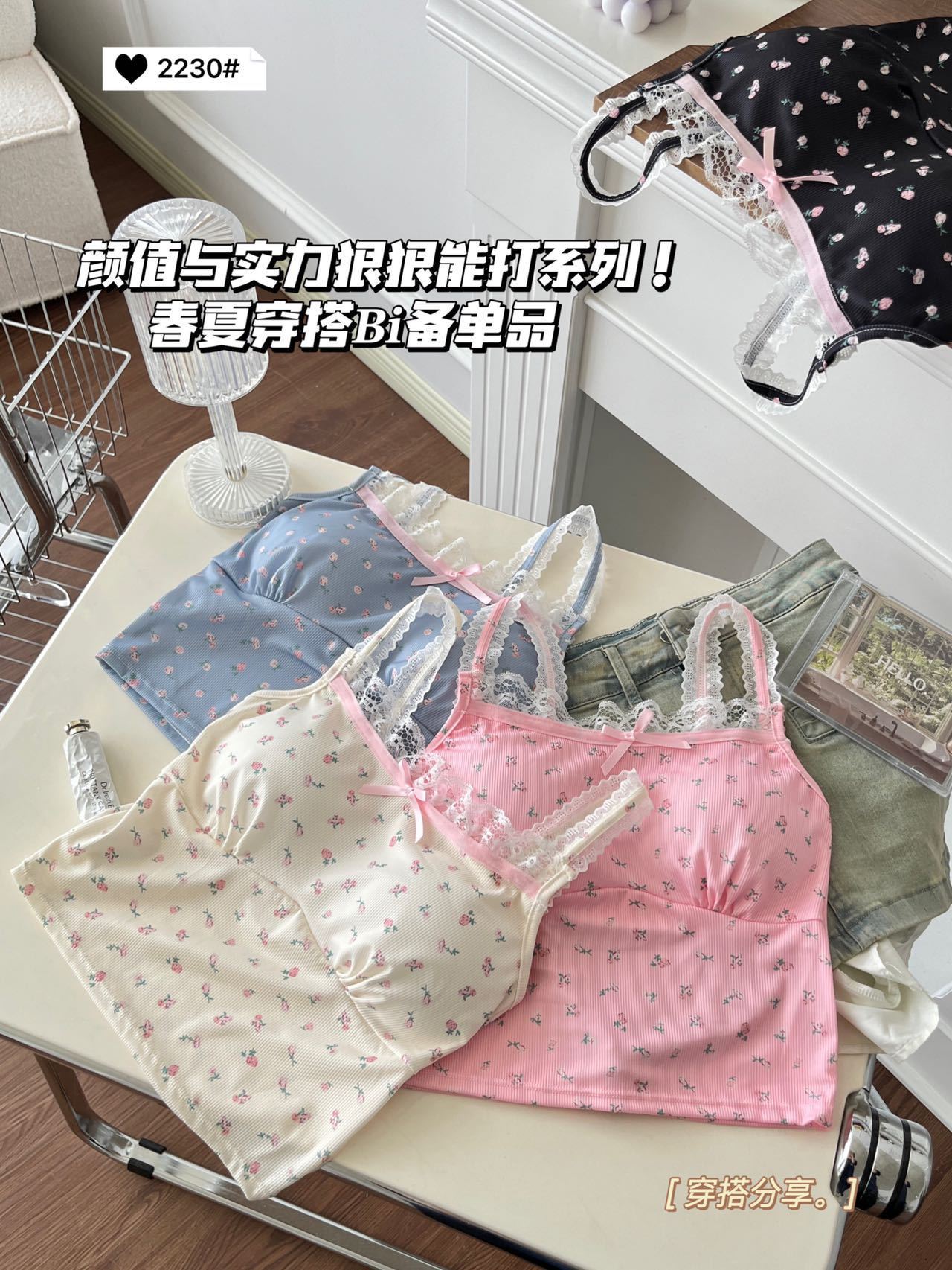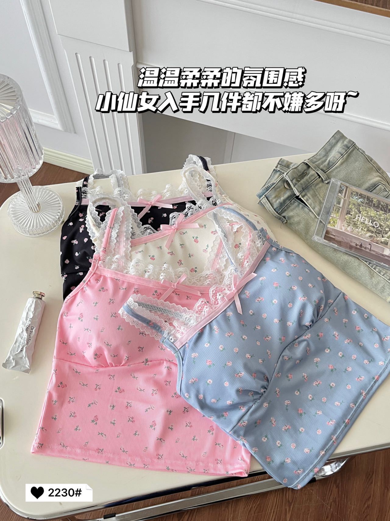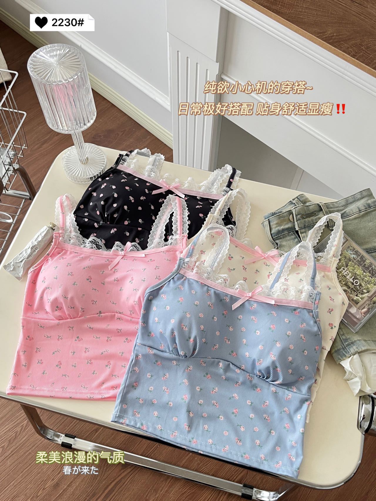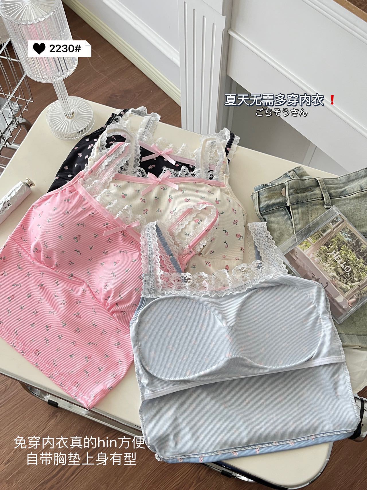 2230 # 한국 달콤한 꽃 레이스 카미솔 여자 가슴 패드 소녀의 짧은 이너 탑스토어 가기