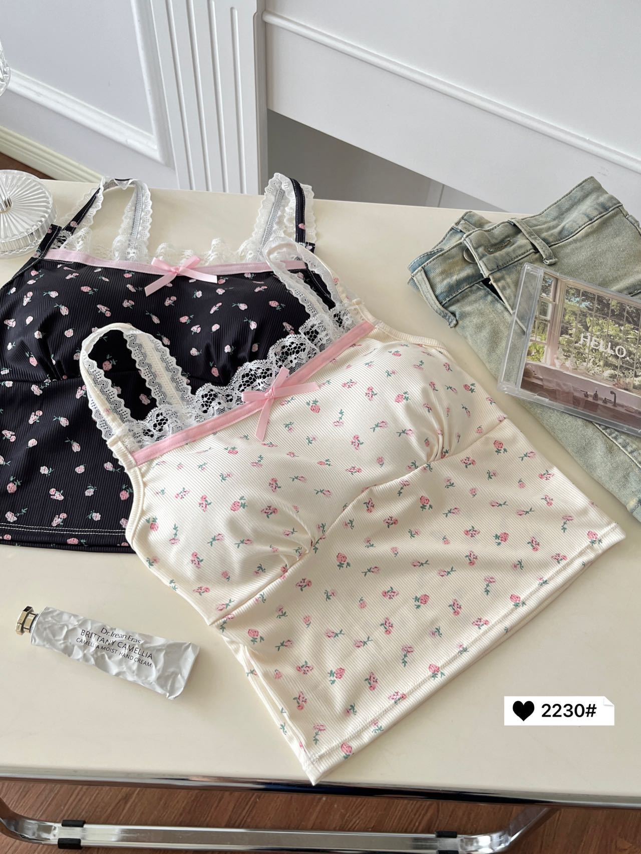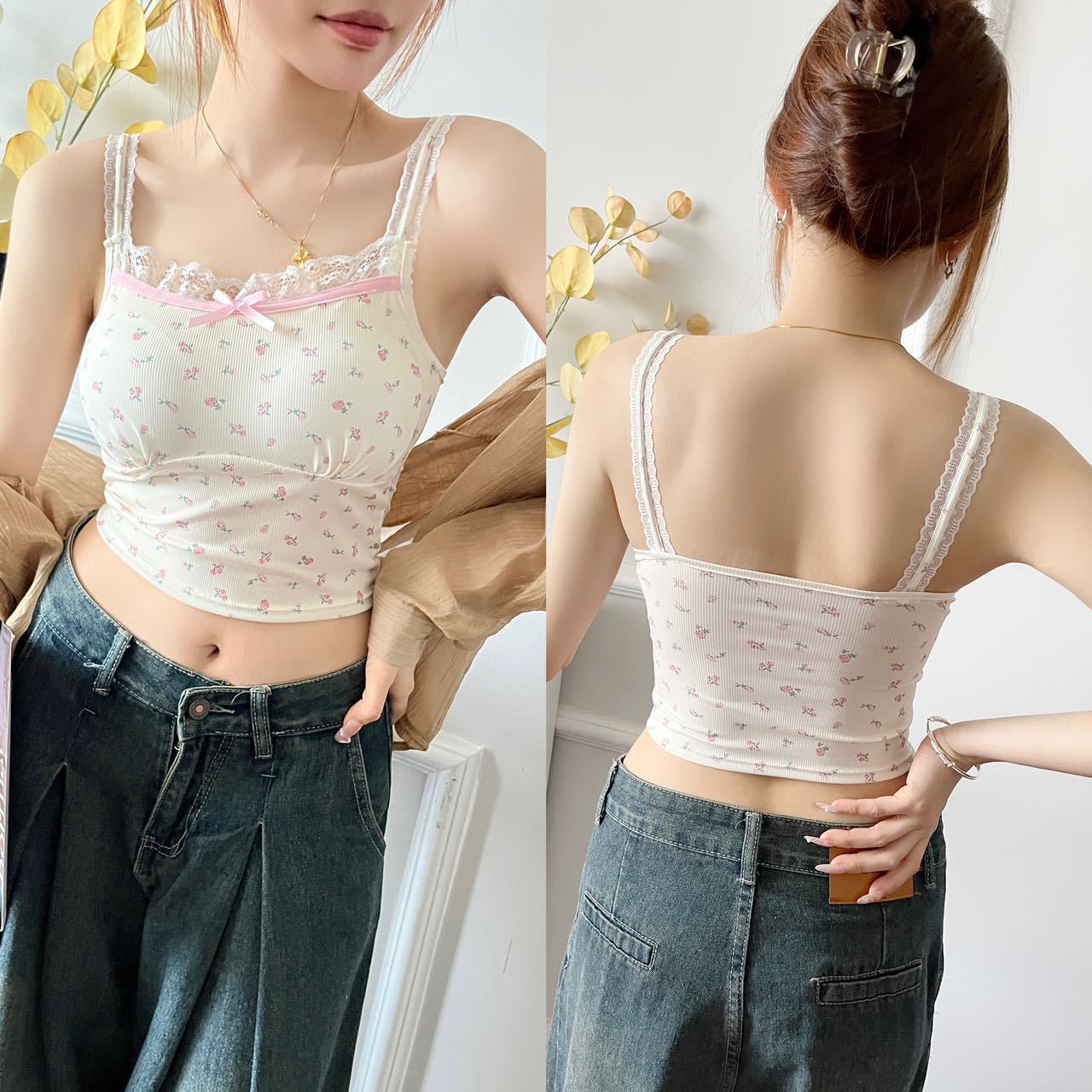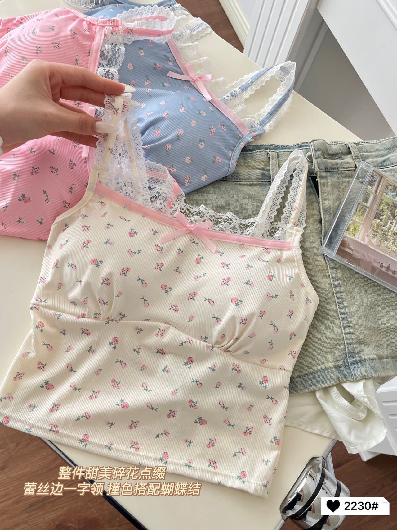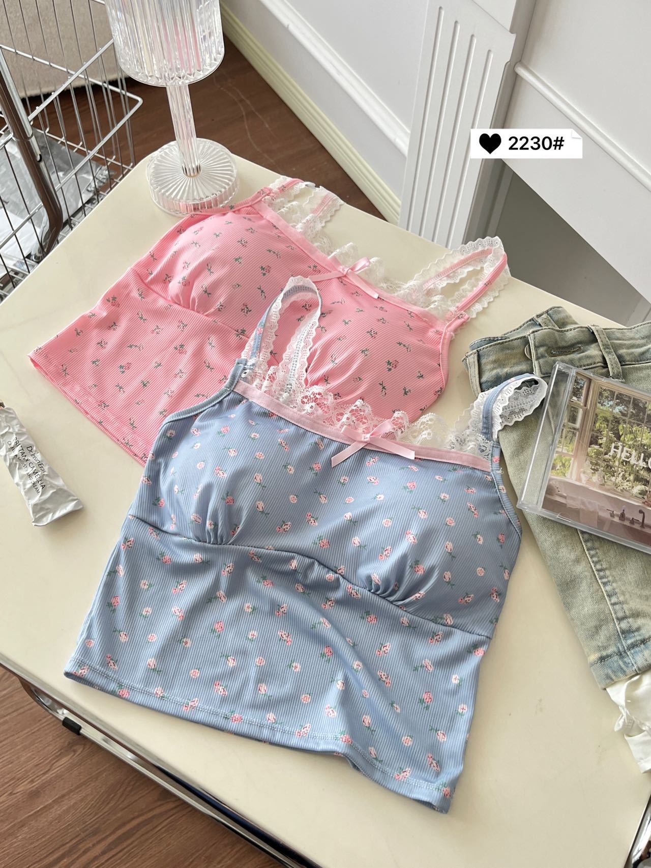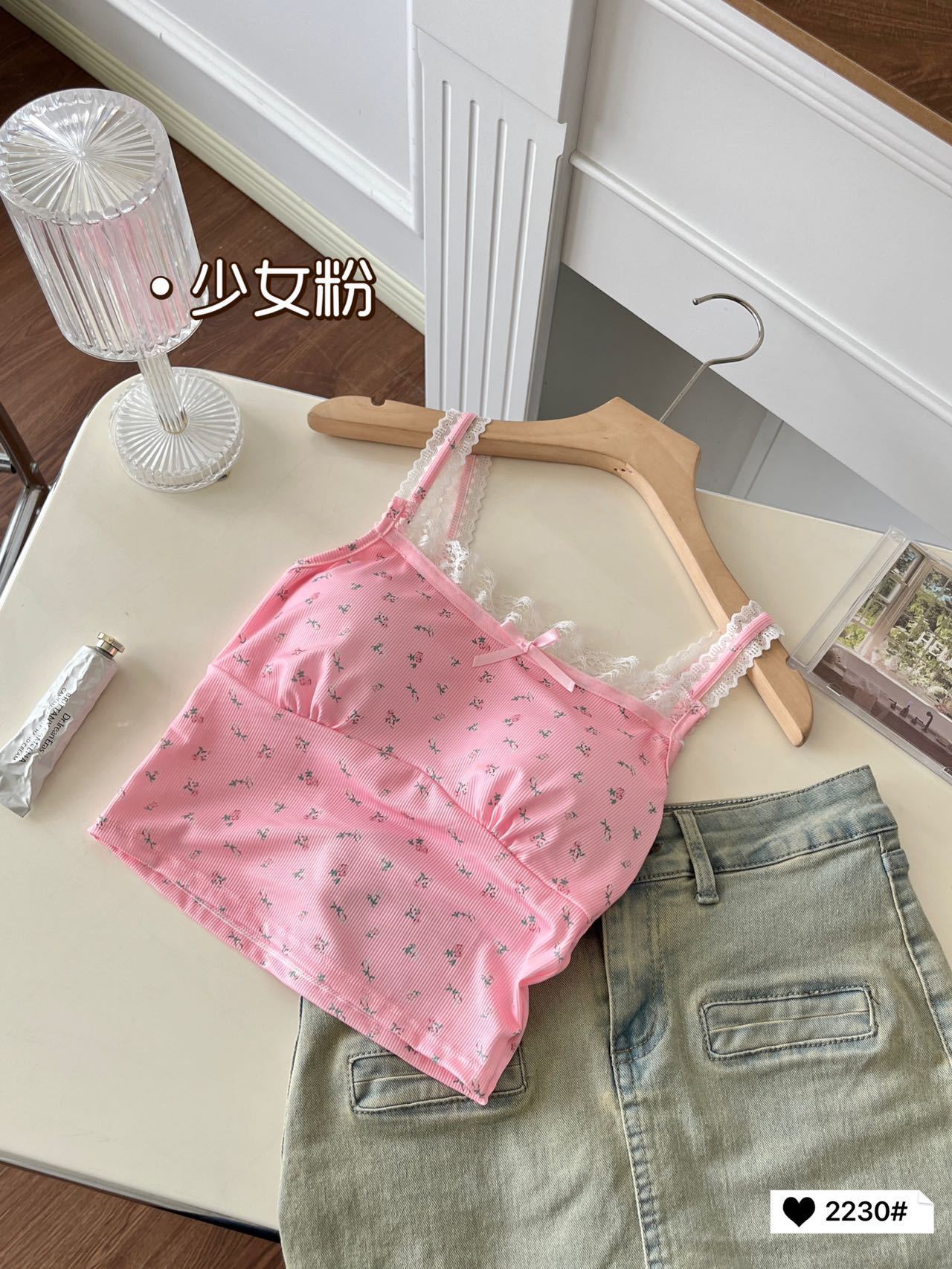 2230 # 한국 달콤한 꽃 레이스 카미솔 여자 가슴 패드 소녀의 짧은 이너 탑스토어 가기