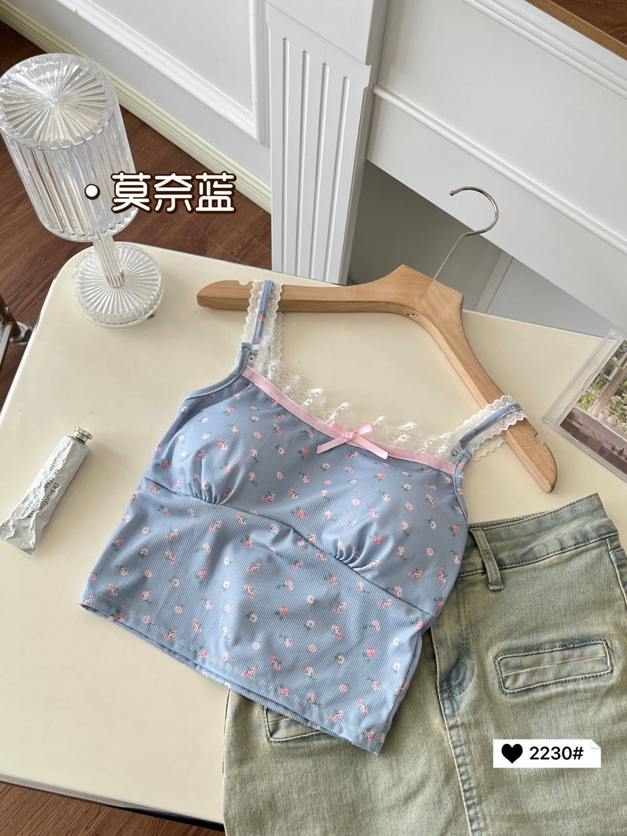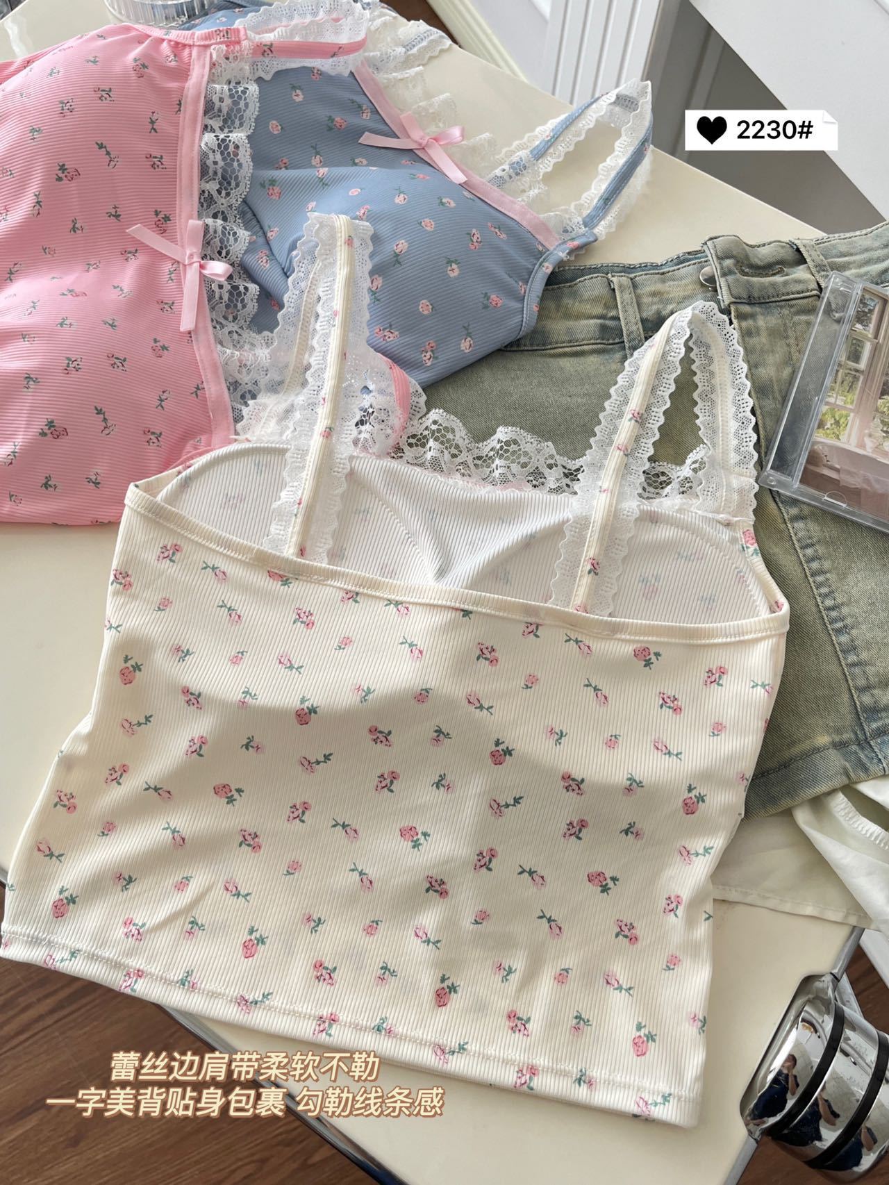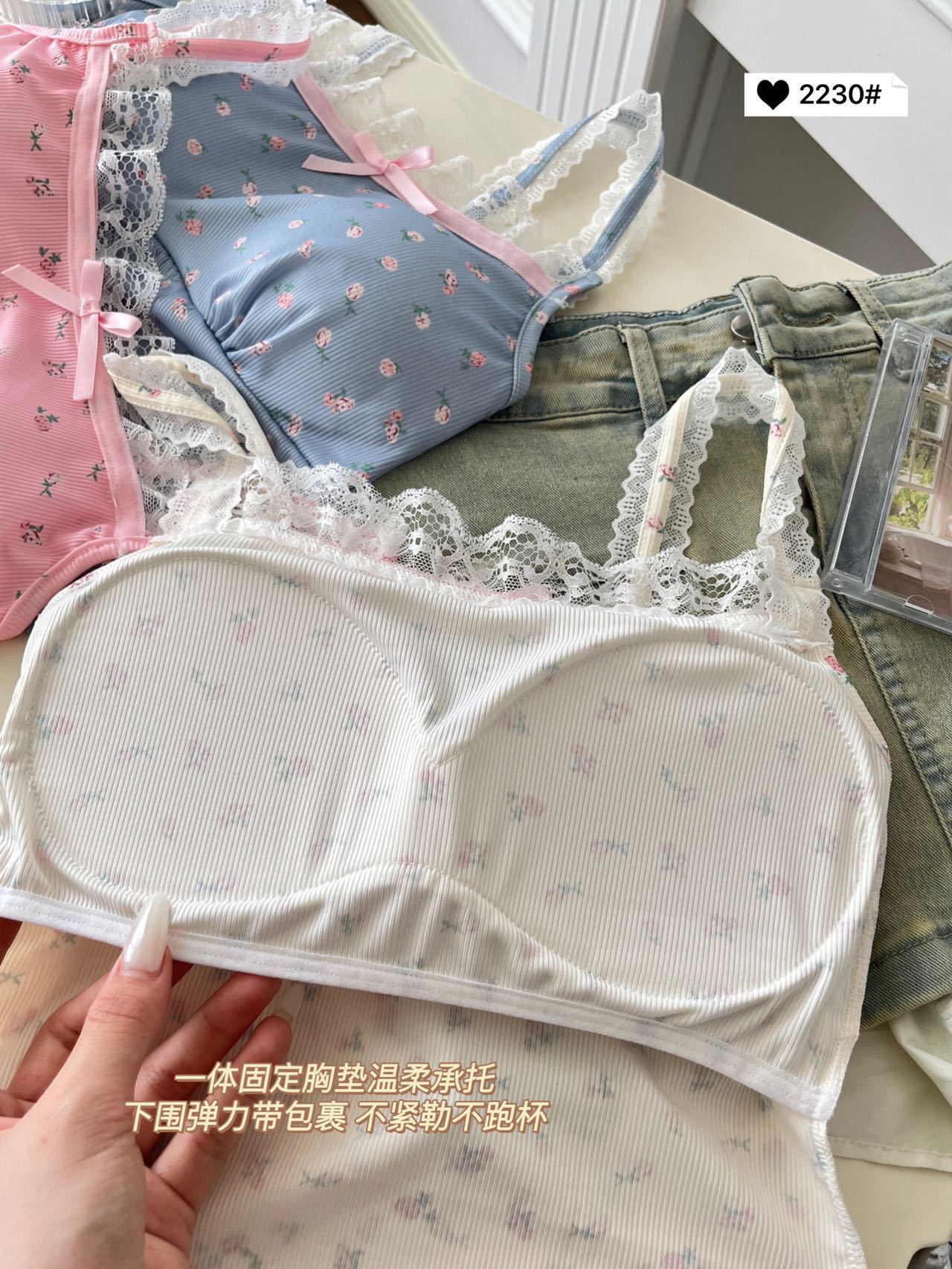 2230 # 한국 달콤한 꽃 레이스 카미솔 여자 가슴 패드 소녀의 짧은 이너 탑
