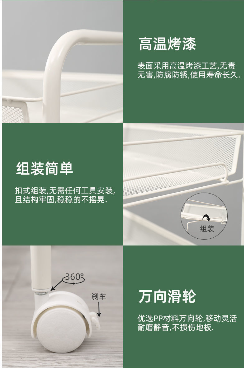 • 아이보리 화이트-3 레이어 바구니 카트-후크 보내기