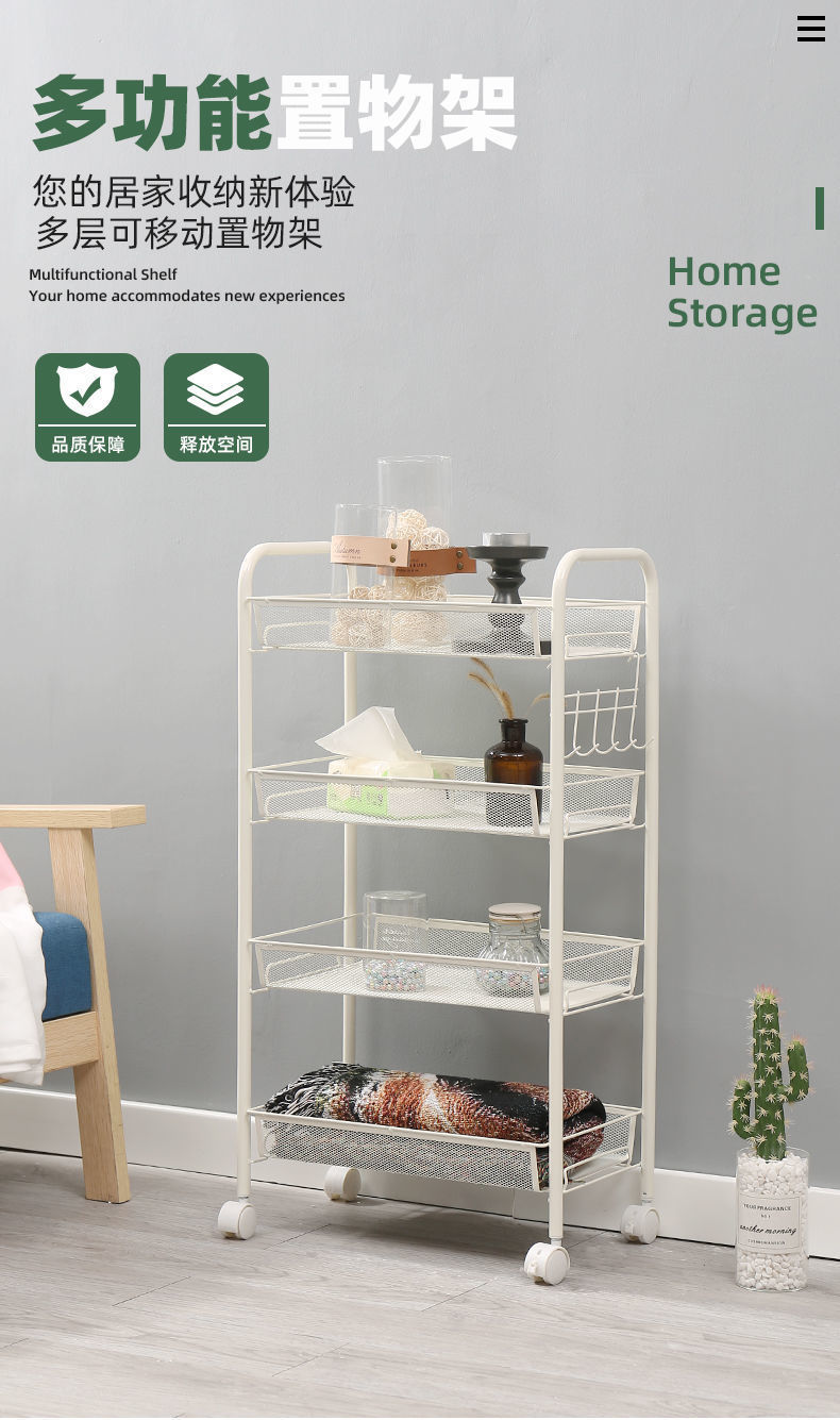 • 아이보리 화이트-4 레이어 바구니 카트-후크 보내기