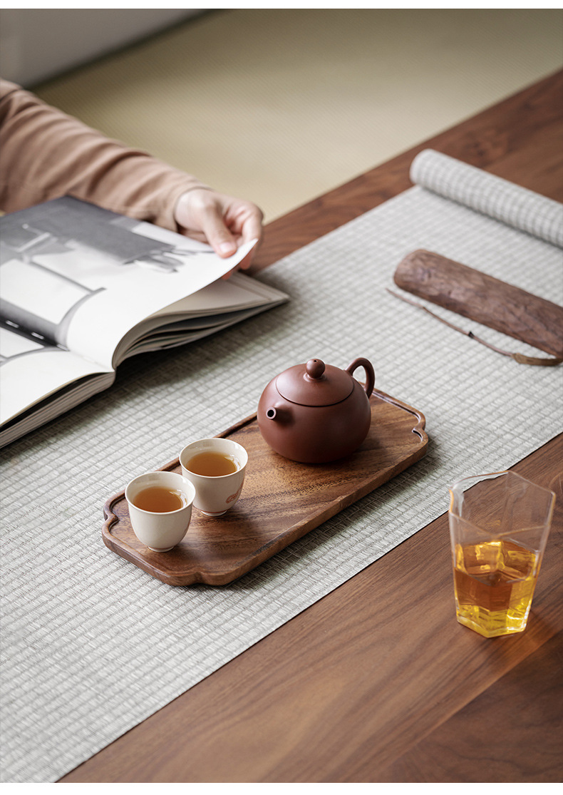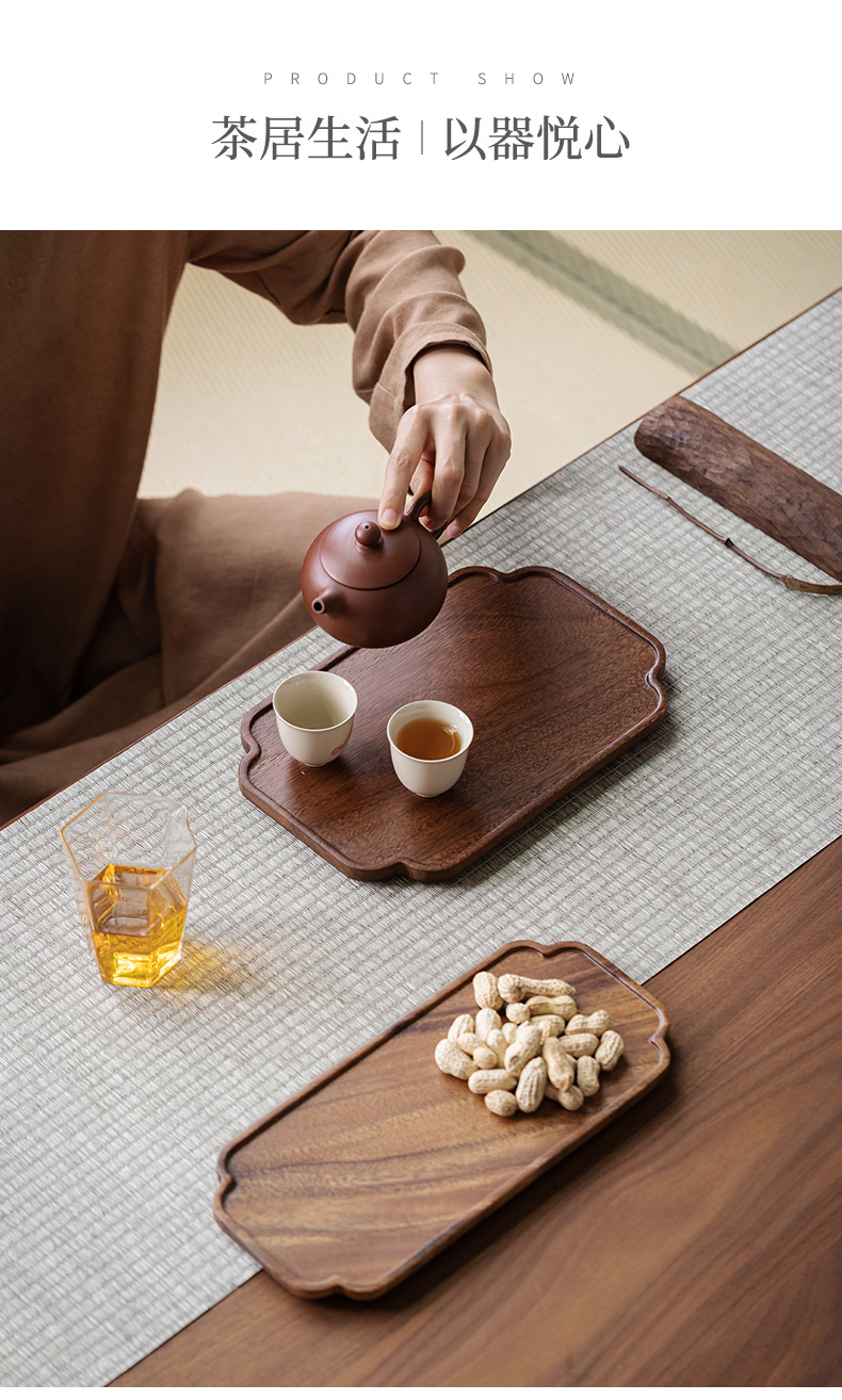 일본식 나무 쟁반 북미 검은 호두 나무 차 쟁반 절묘한 직사각형 디너 플레이트는 단단한 나무 커피 접시를 버립니다.스토어 가기