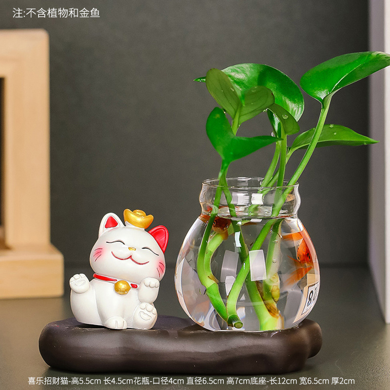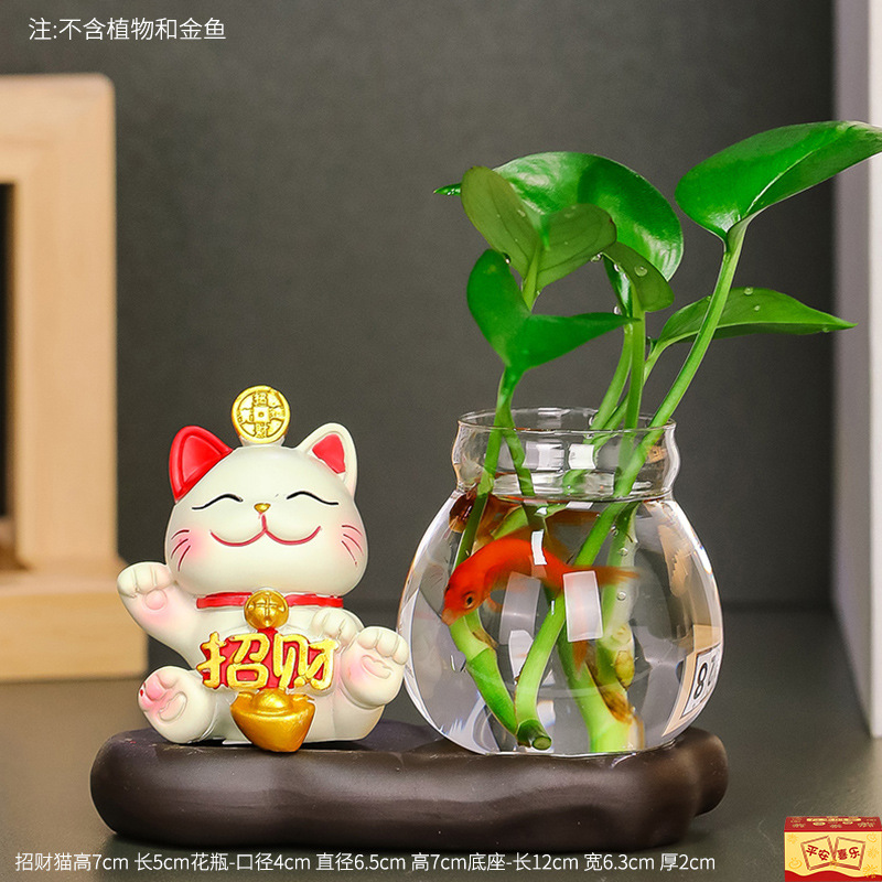 중국 스타일 럭캣 수경 꽃 유리 병 물고기 탱크 사무실 장식 장식 장식 장식 선물 녹색 장미 물 꽃 올리기스토어 가기