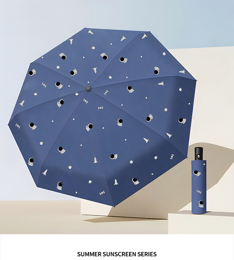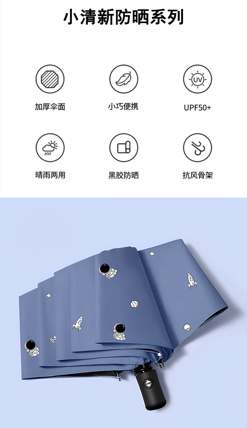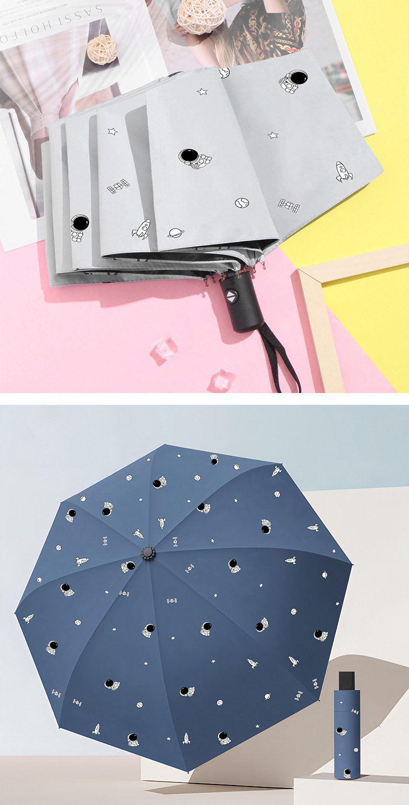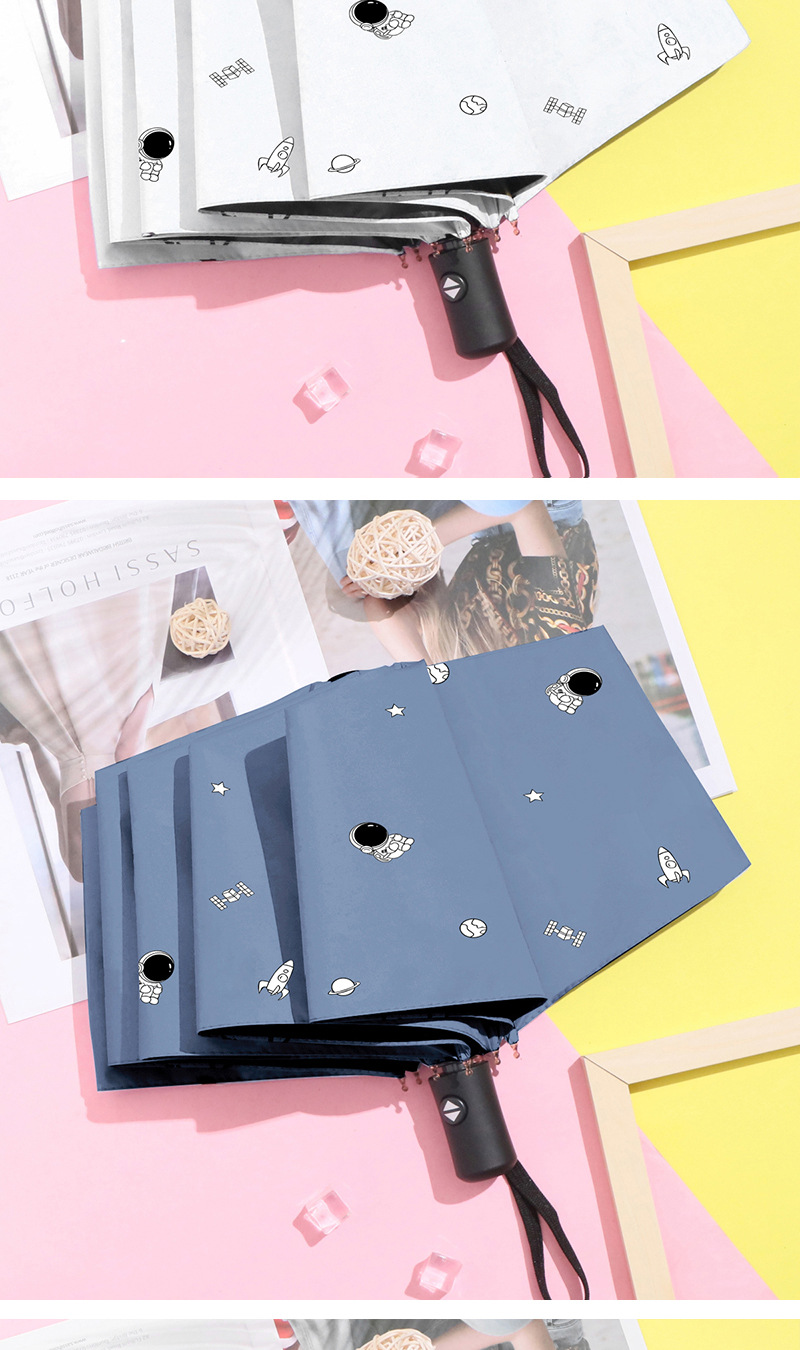 우주 비행사 완전 자동 우산 여성의 햇빛과 비 이중 사용 태양 보호 자외선 보호 태양 우산 만화 신선한 태양 우산