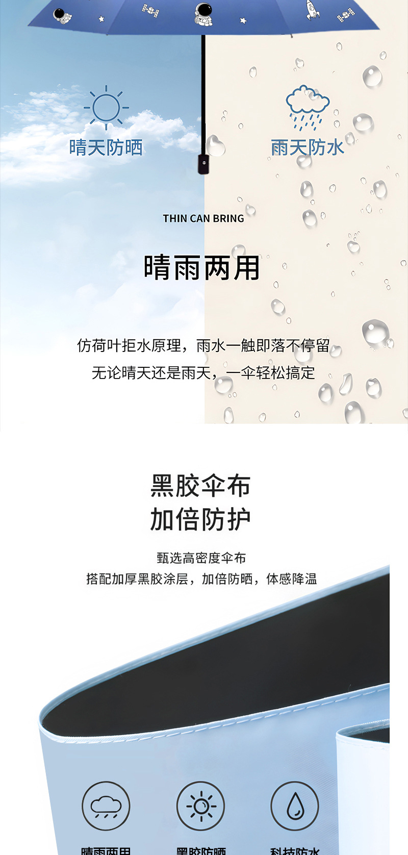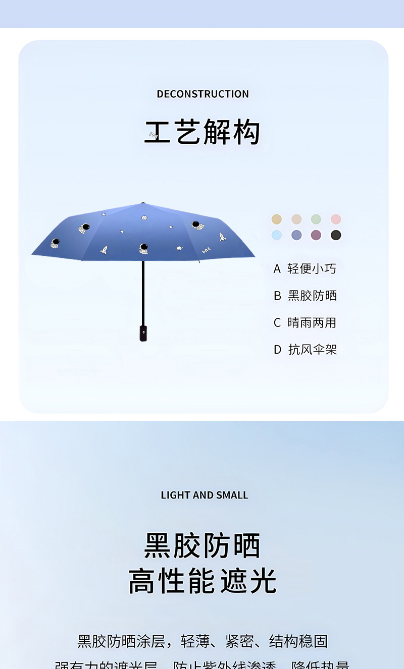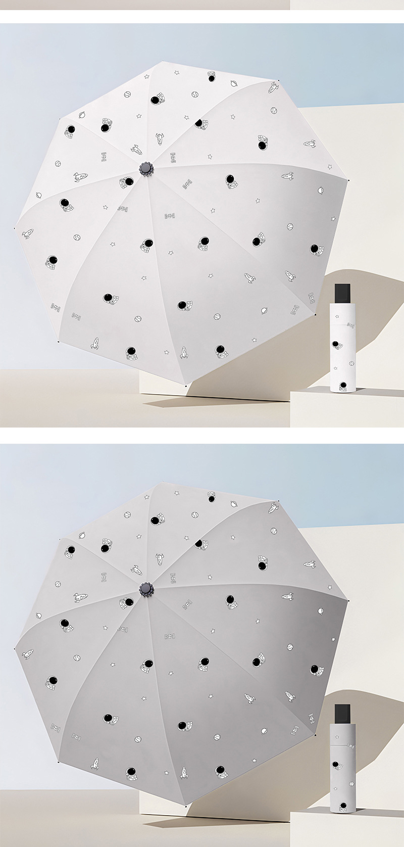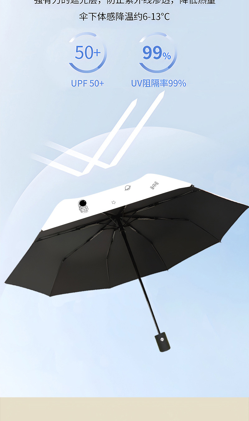 우주 비행사 완전 자동 우산 여성의 햇빛과 비 이중 사용 태양 보호 자외선 보호 태양 우산 만화 신선한 태양 우산