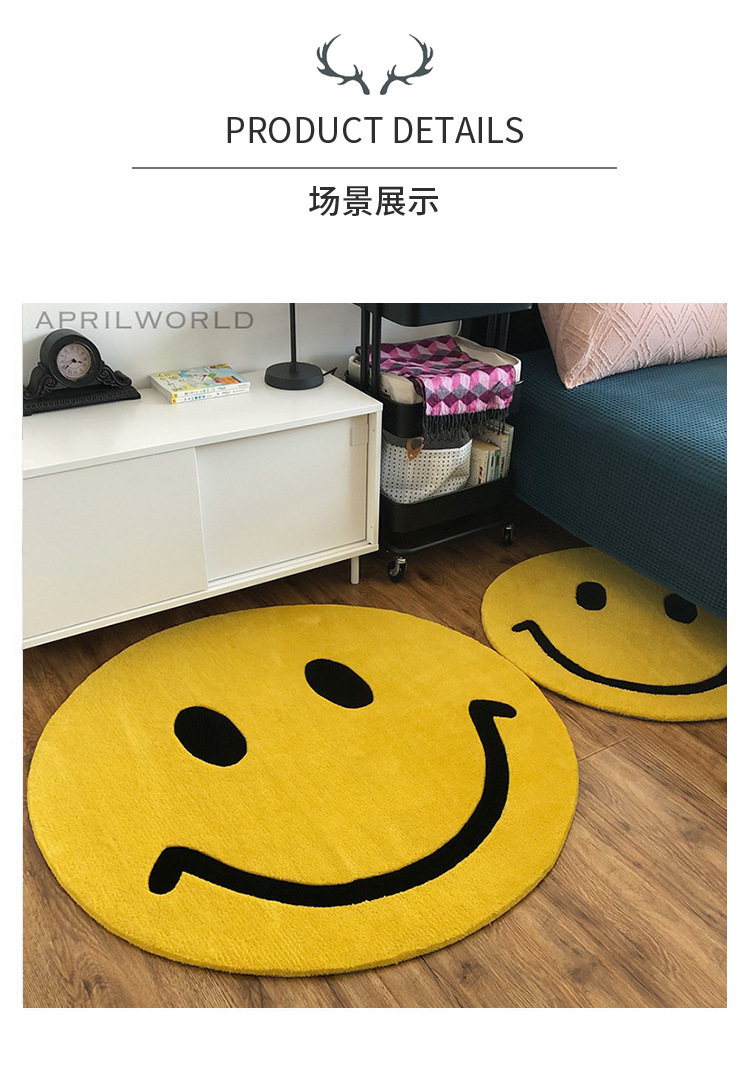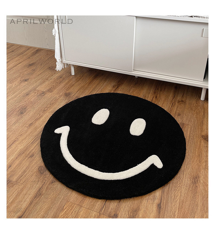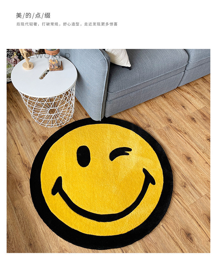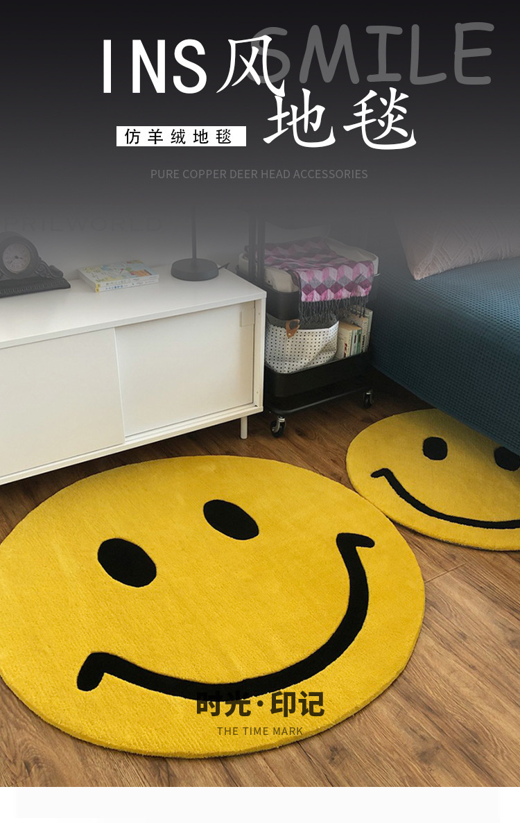 Ins 바람 표현 웃는 얼굴 둥근 카펫 집 거실 카펫 침실 침대 옆 모조 캐시미어 카펫 머리카락 한 세대스토어 가기