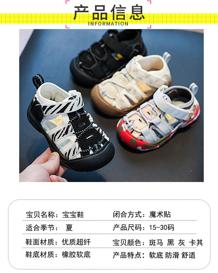 [15-30] 소년 baotou 속이 빈 얼룩말 샌들 여름 여자 야외 해변 신발 아기 유아 신발스토어 가기