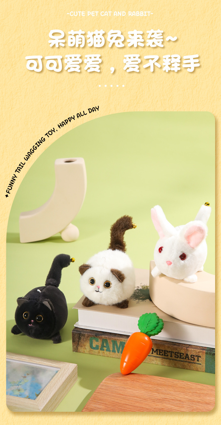 꼬리 흔드는 흰색 고양이 인형, 귀여운 끈, 움직이고 회전하는 비숑 프리제 개 인형, 끈이 달린 플러시 장난감