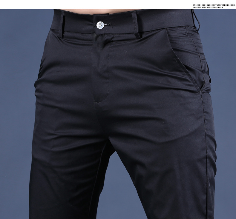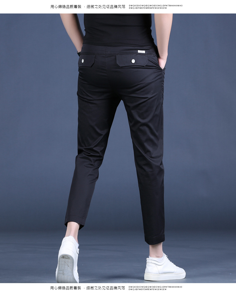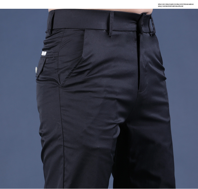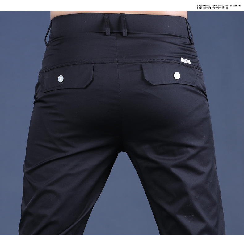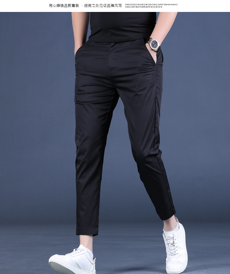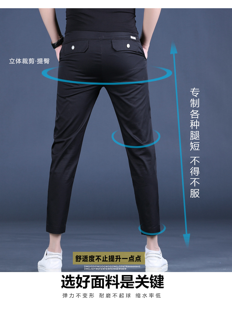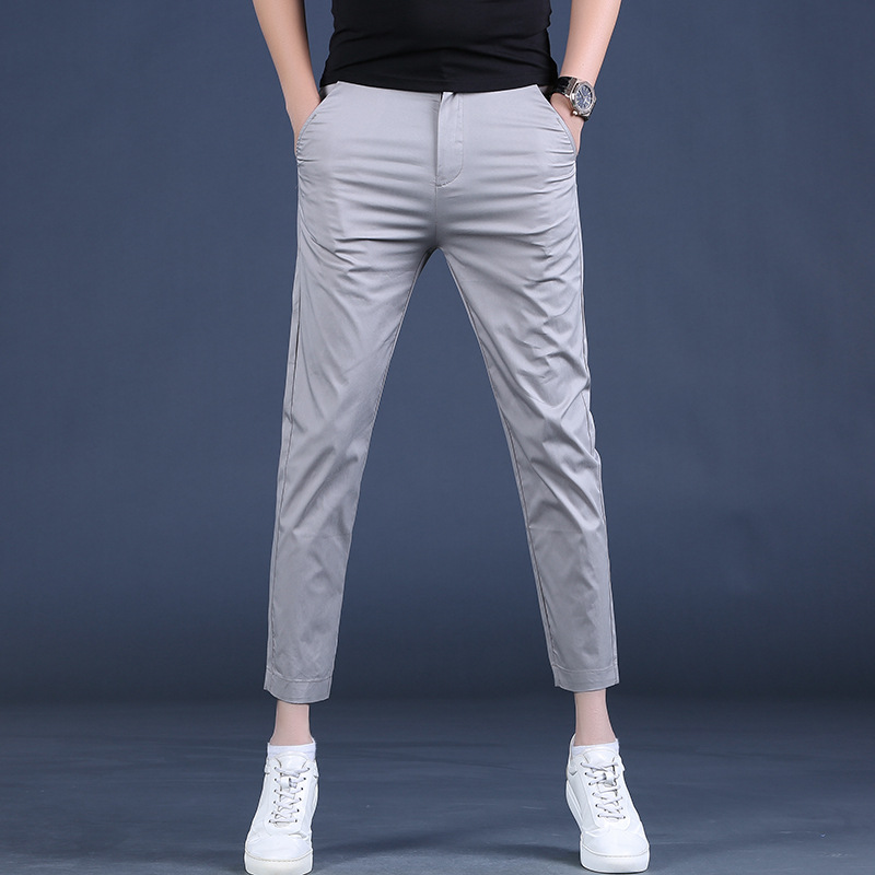 여름 새로운 남성 캐주얼 바지 슬림 핏 세트 바지 스트레칭 남성 블랙 바지 작은 바지 얇은 자른 바지스토어 가기