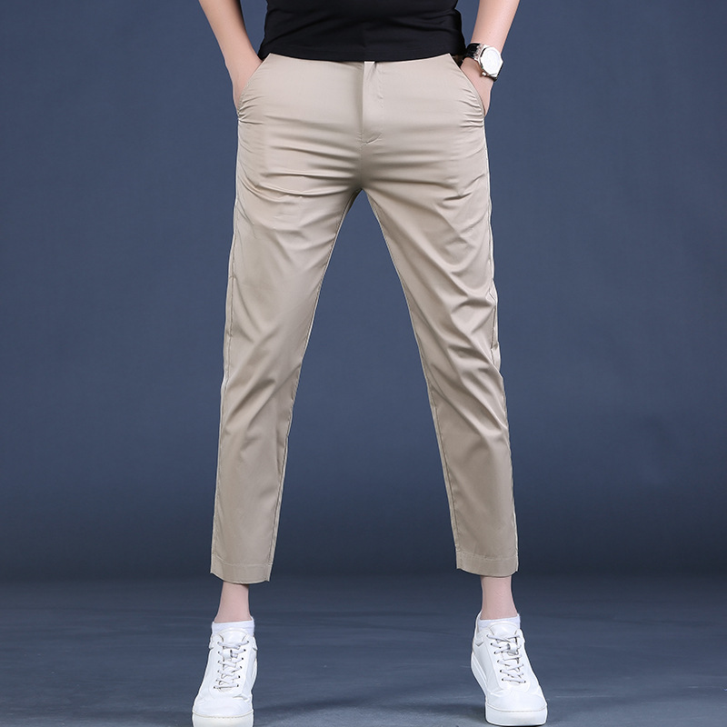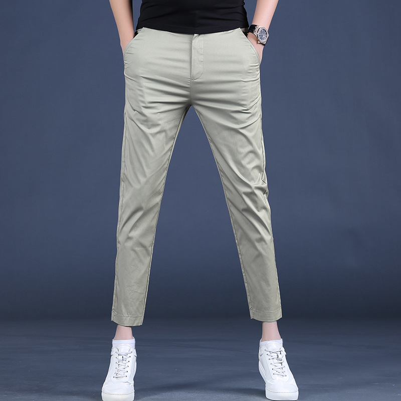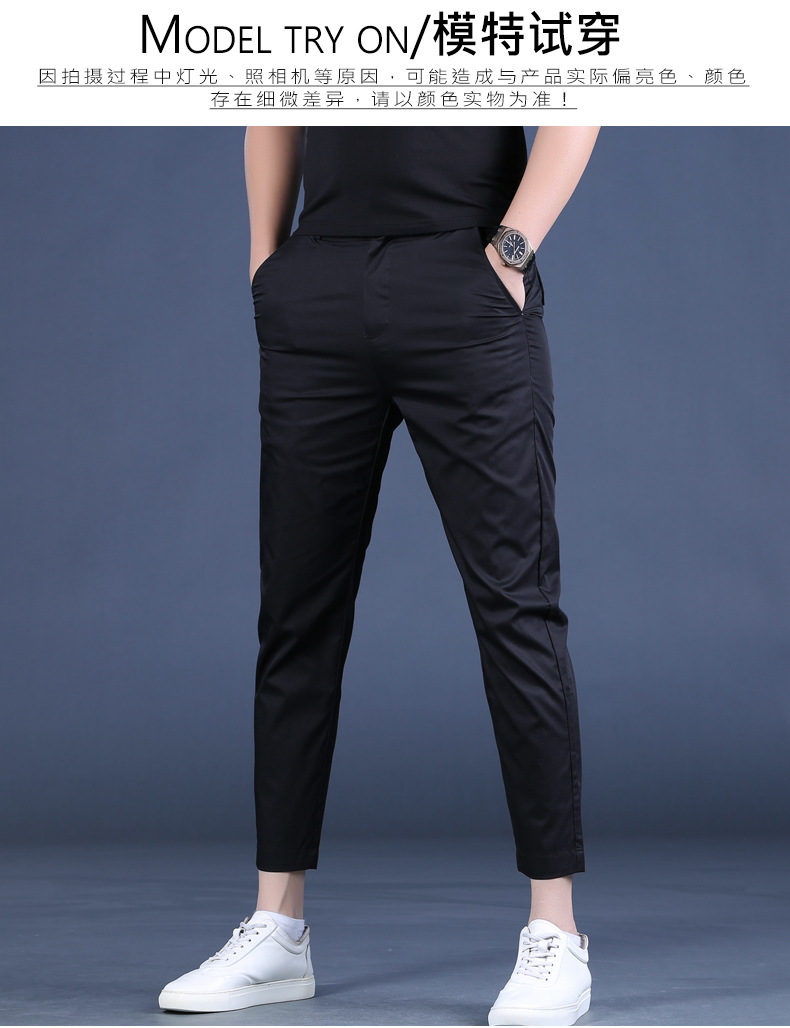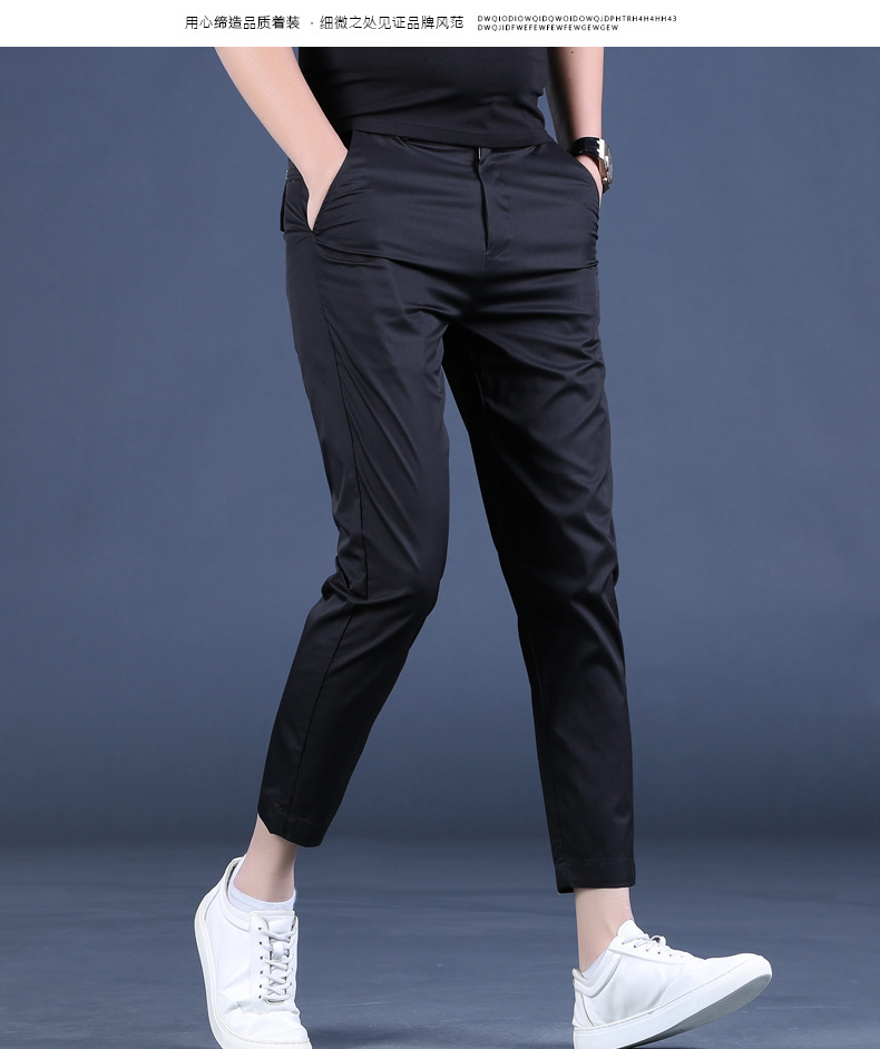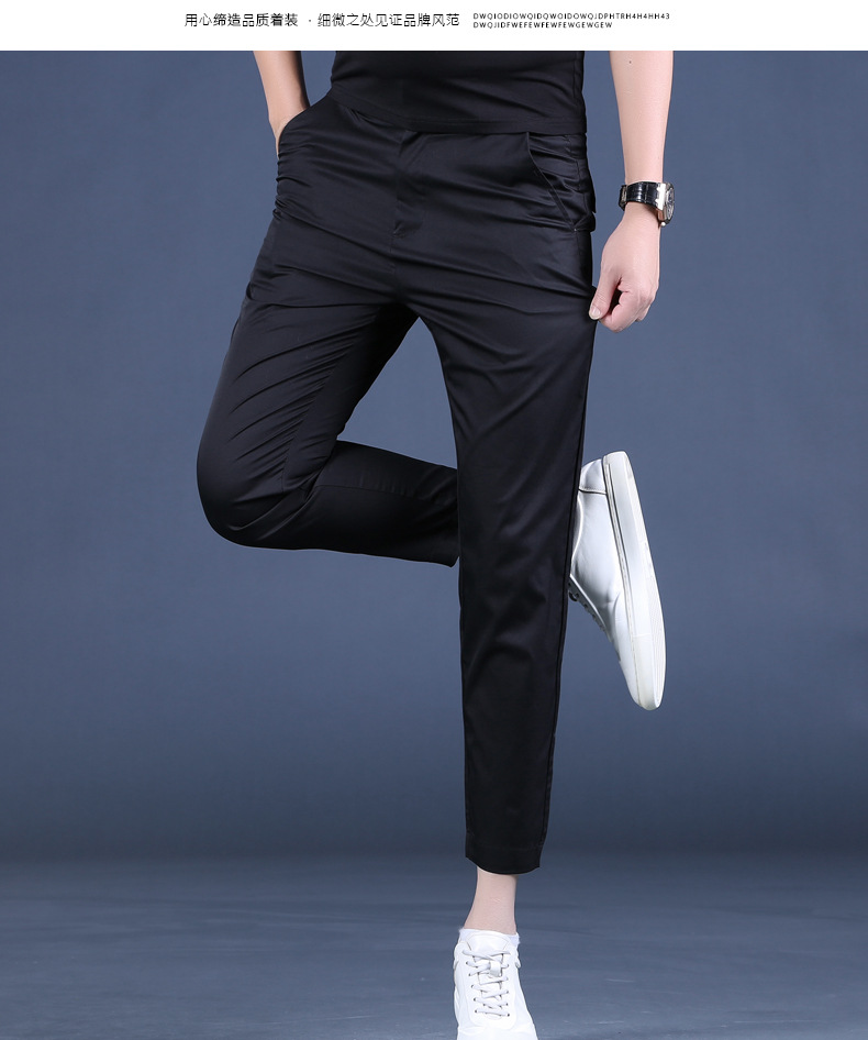 여름 새로운 남성 캐주얼 바지 슬림 핏 세트 바지 스트레칭 남성 블랙 바지 작은 바지 얇은 자른 바지