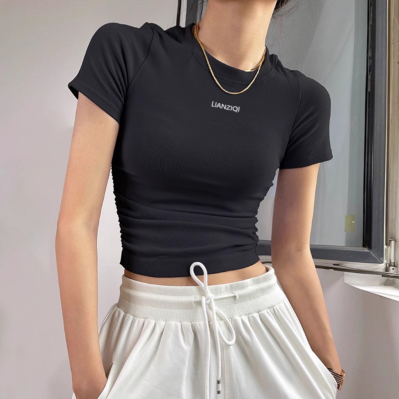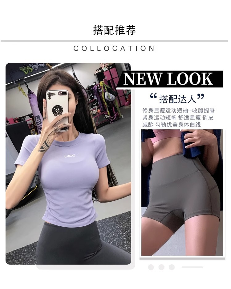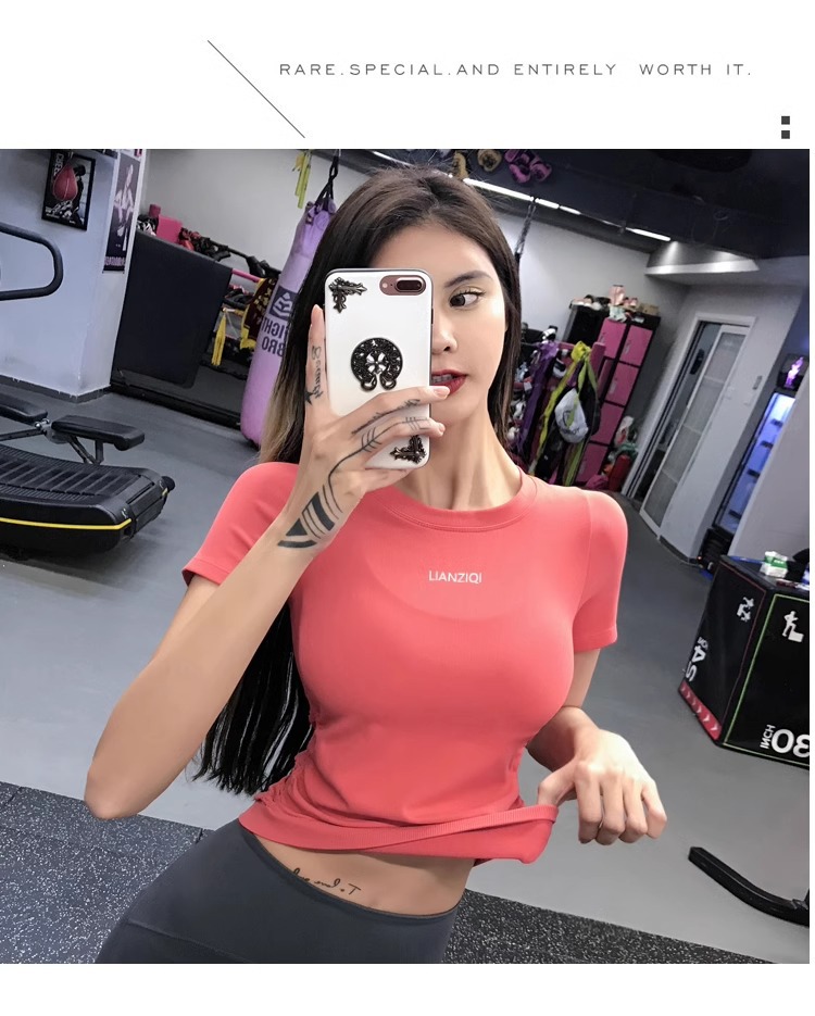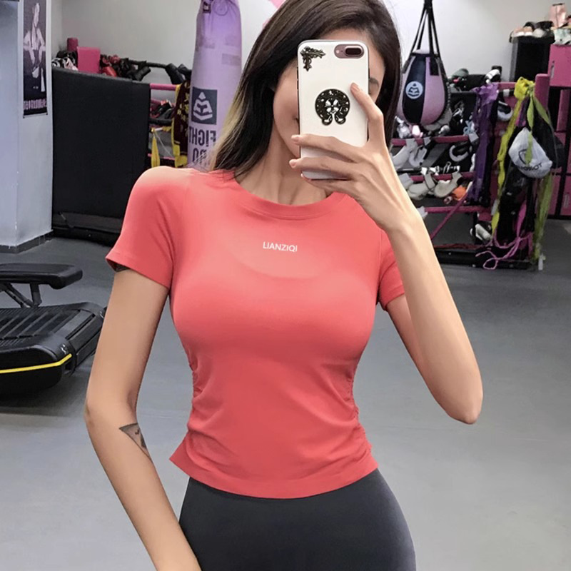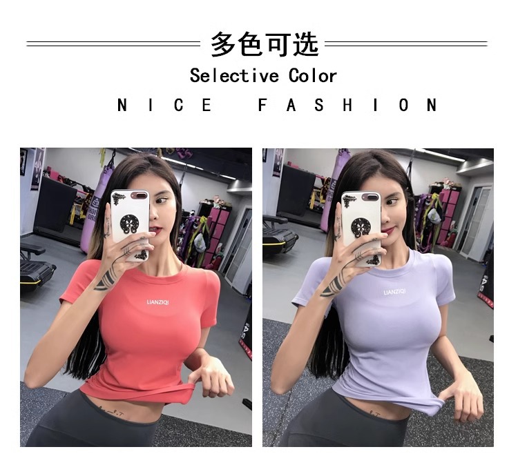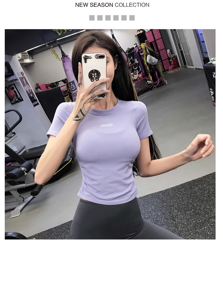 피트니스 짧은 슬림 요가 탑 여름 얇은 통기성 빠른 건조 전문 교육 스포츠 반팔 티셔츠 여성 패션스토어 가기