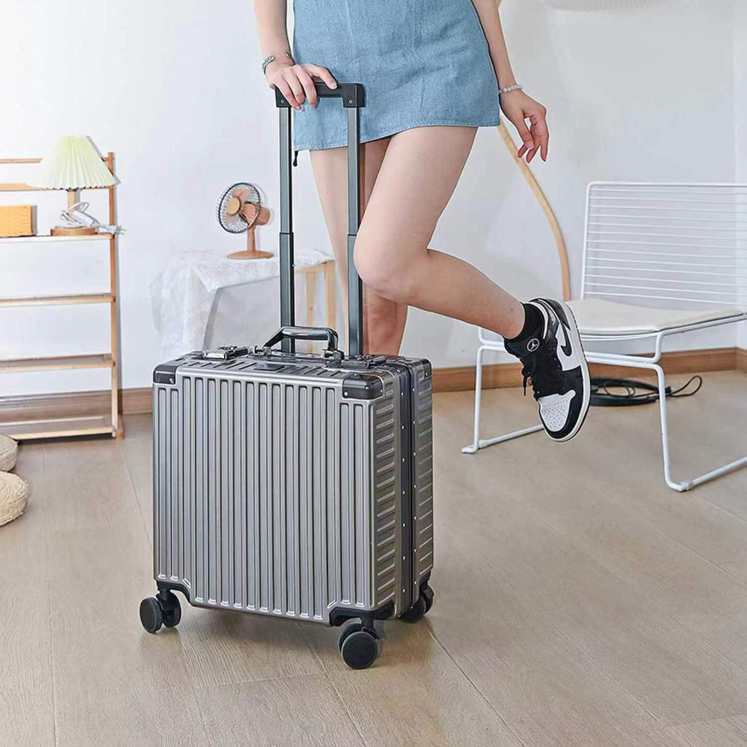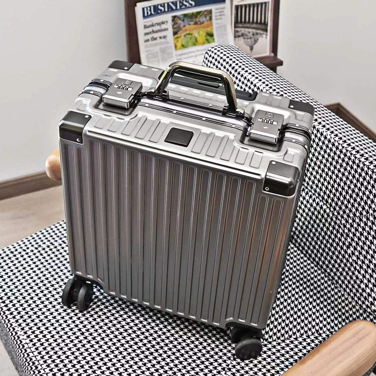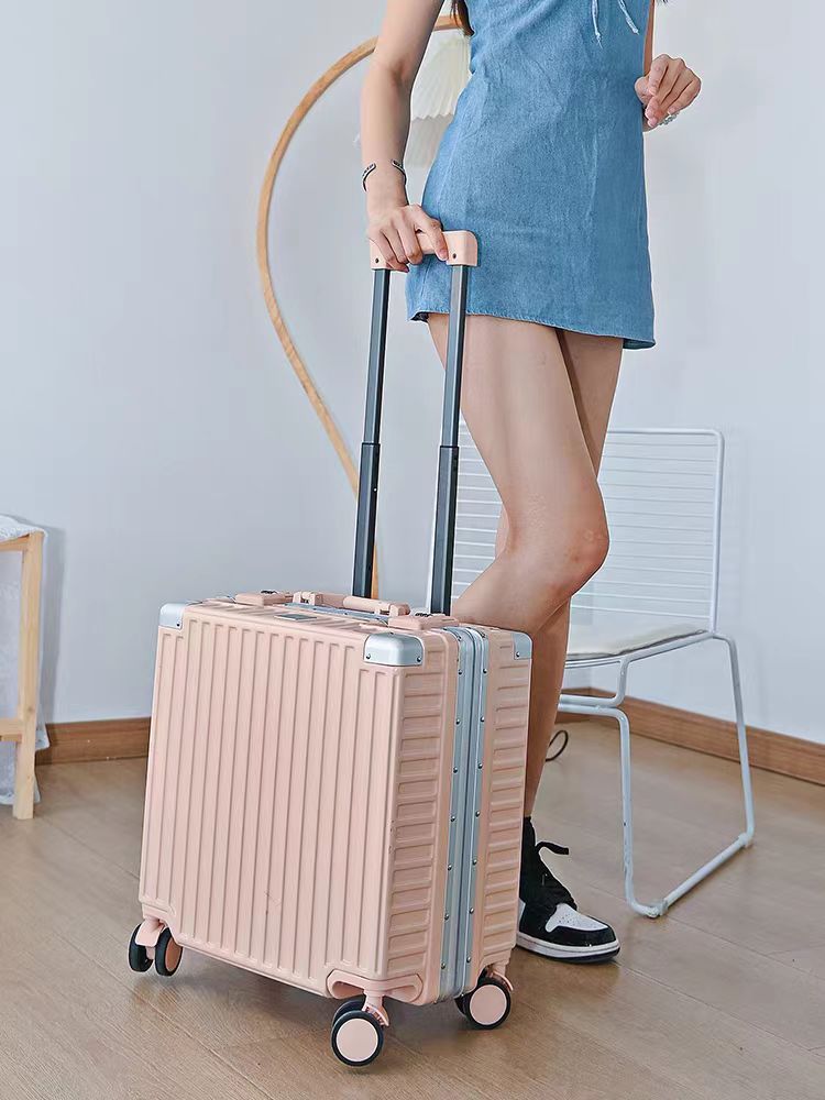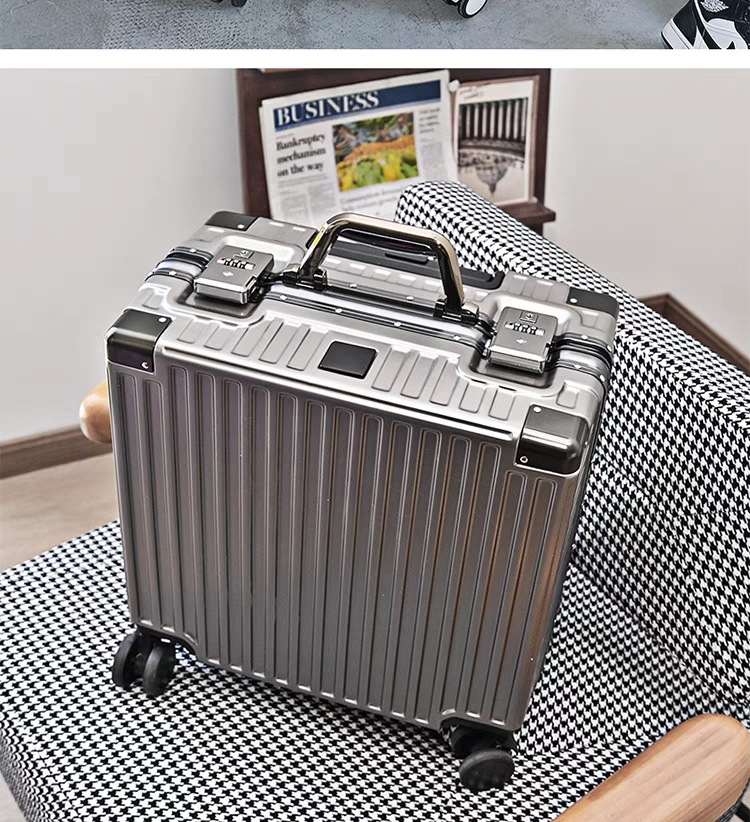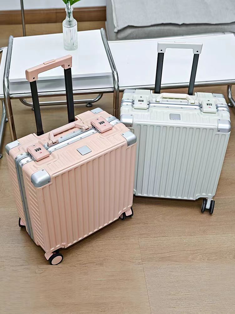 수하물 케이스 알루미늄 프레임 여성의 소형 경량 18 인치 탑승 암호 상자 남성의 견고하고 내구성이 뛰어난 유니버설 휠 여행 트롤리 케이스스토어 가기