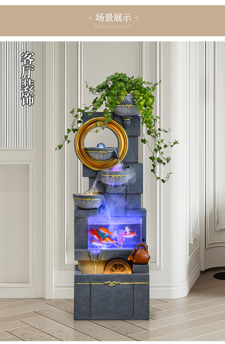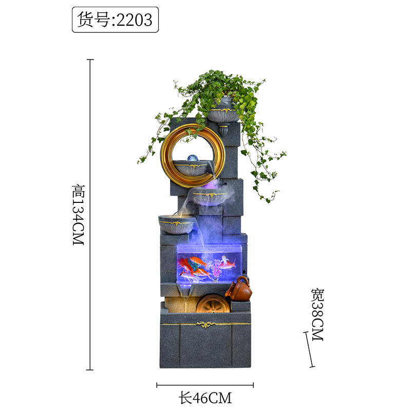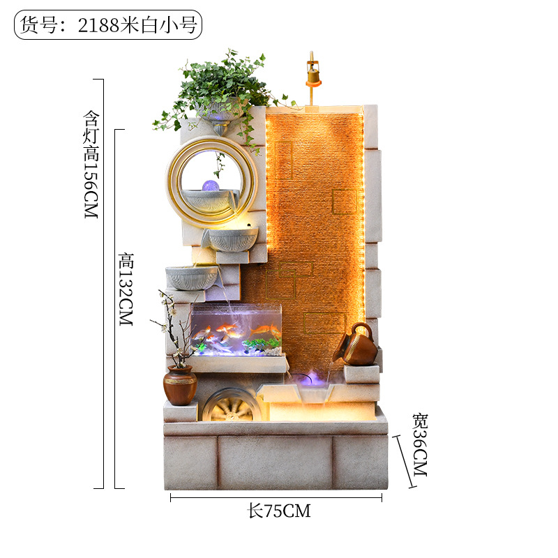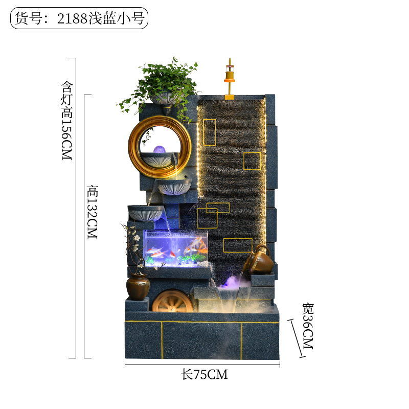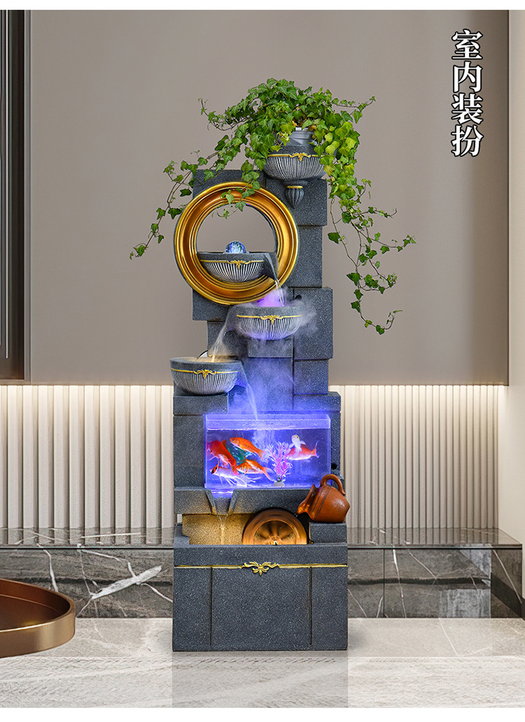 Jianou 물 커튼 벽 물고기 탱크 물 장식 사무실 입구 바닥 순환 물 행운의 거실 분수