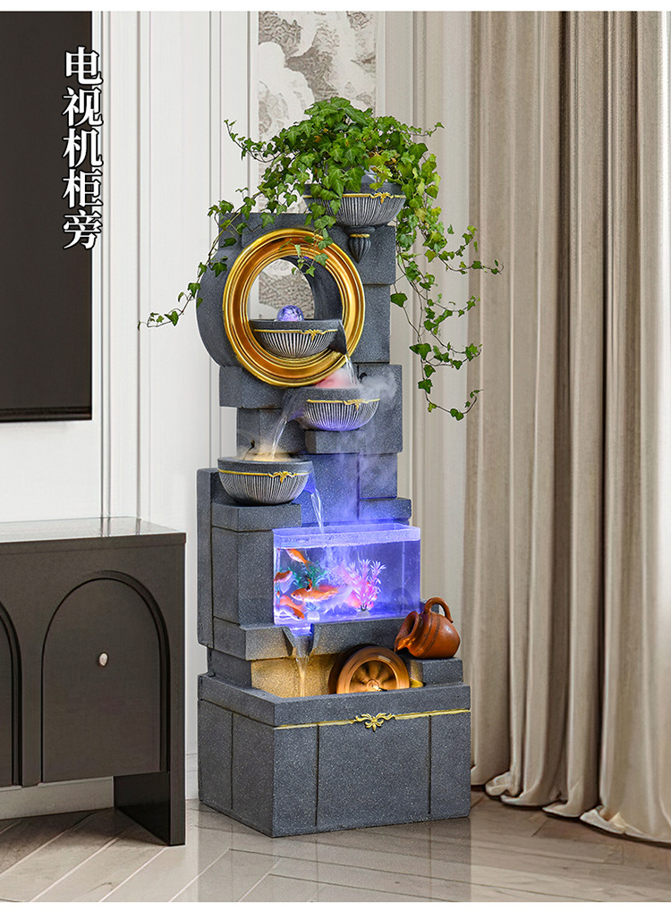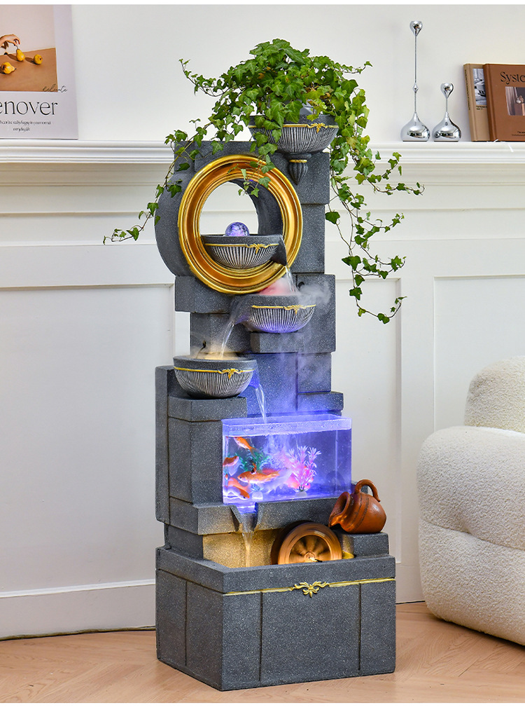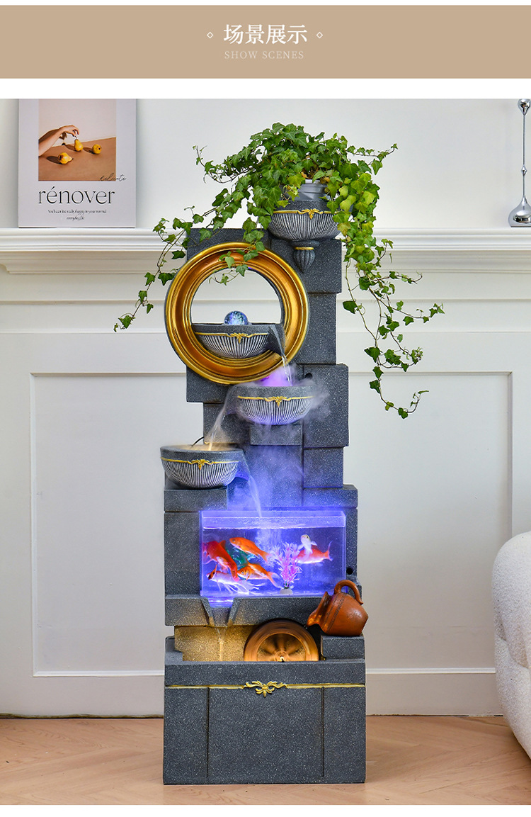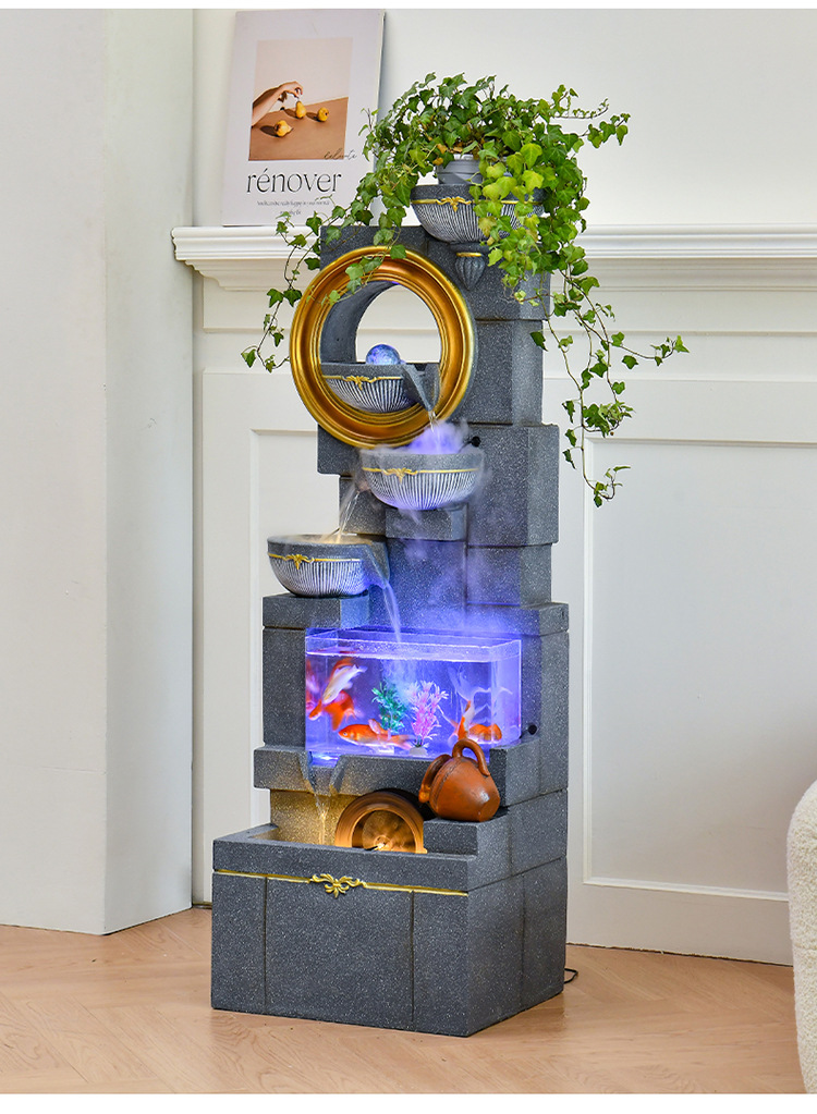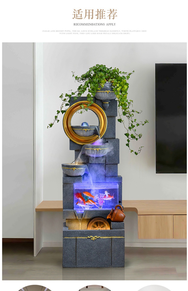 Jianou 물 커튼 벽 물고기 탱크 물 장식 사무실 입구 바닥 순환 물 행운의 거실 분수
