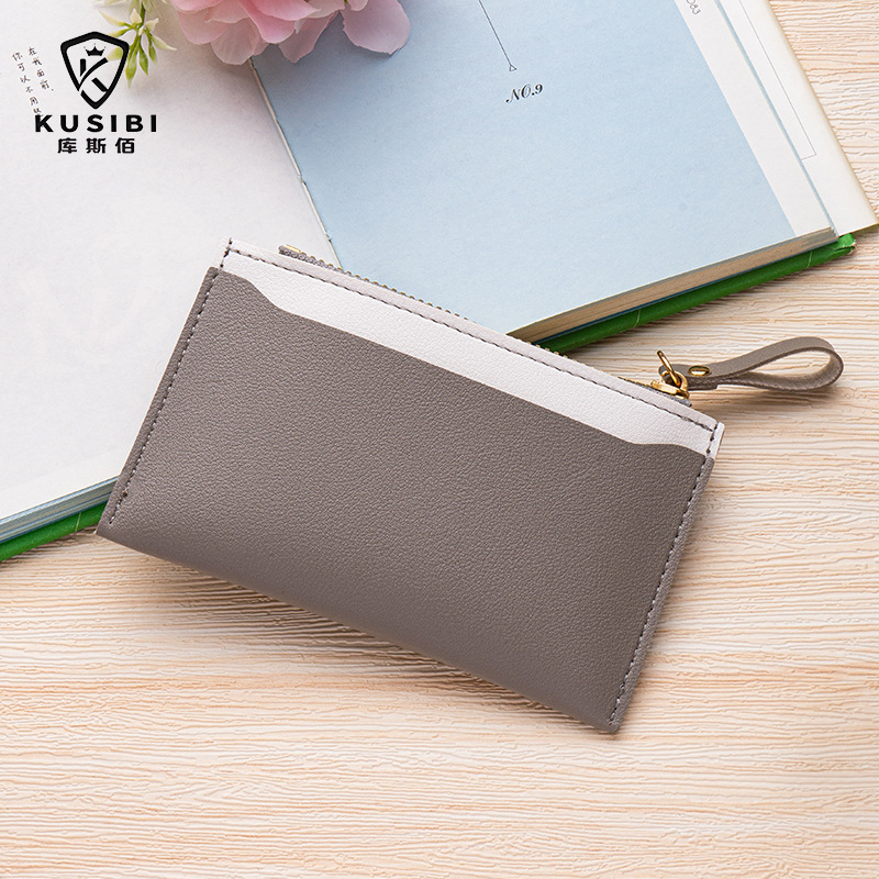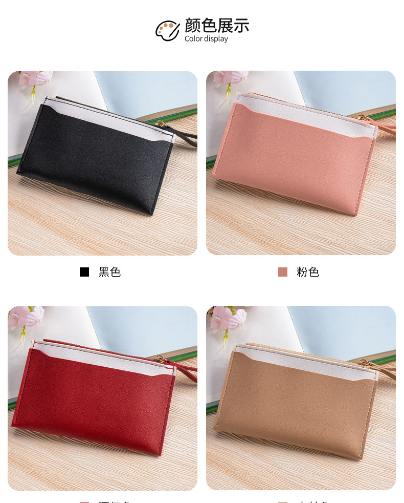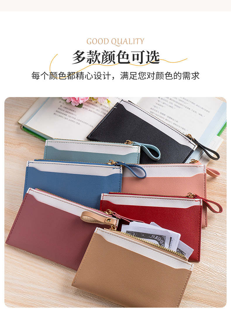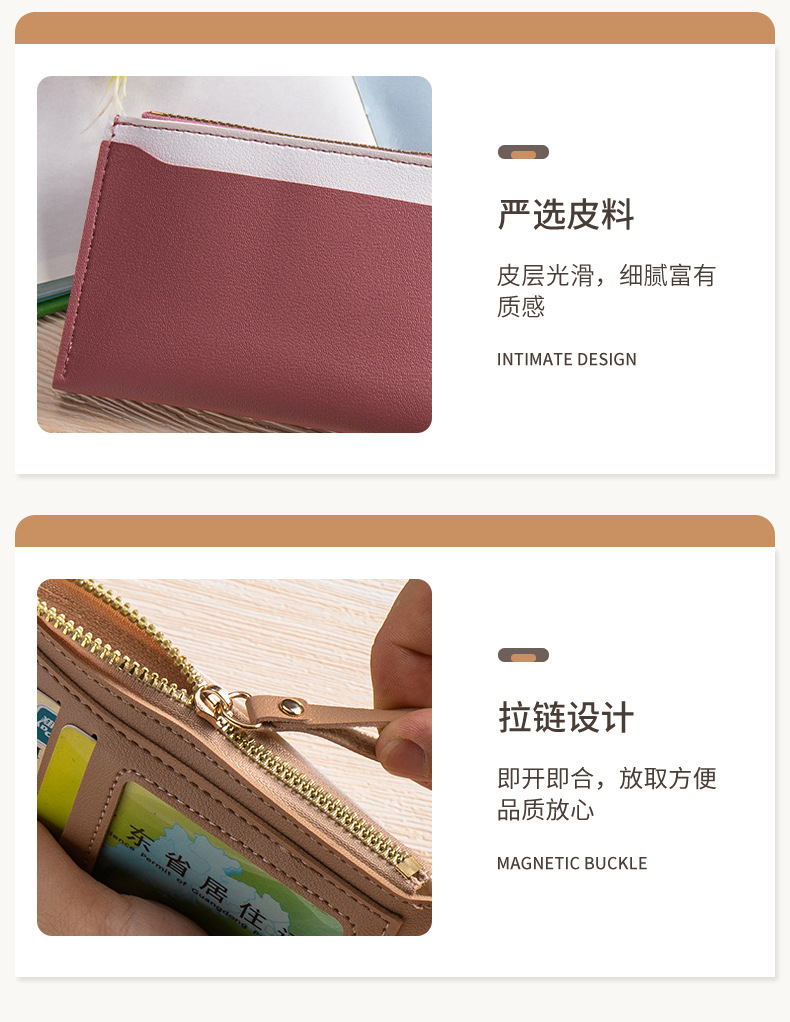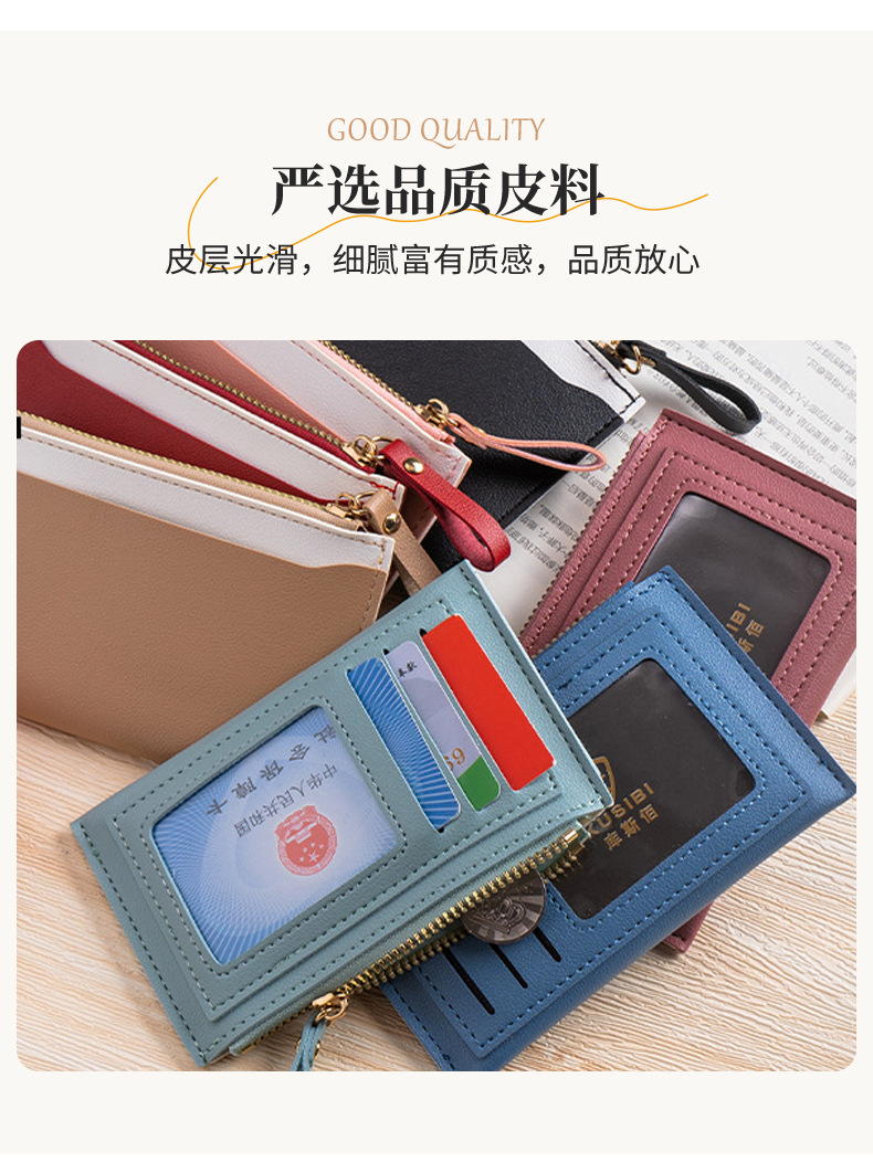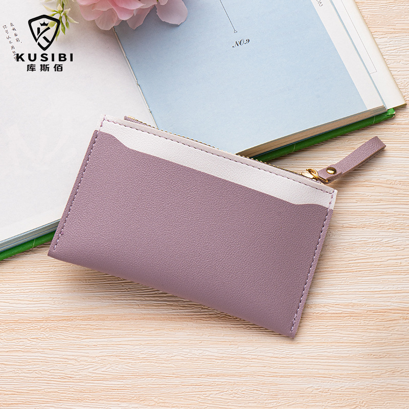 작은 신선한 지갑 카드 가방 여성 지퍼 동전 지갑 2024 새로운 재고 도매 PU 가죽 스티칭 대비 색상 ID 카드