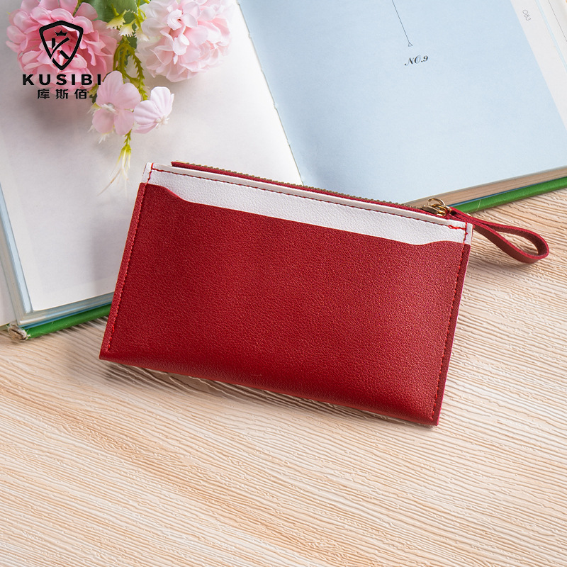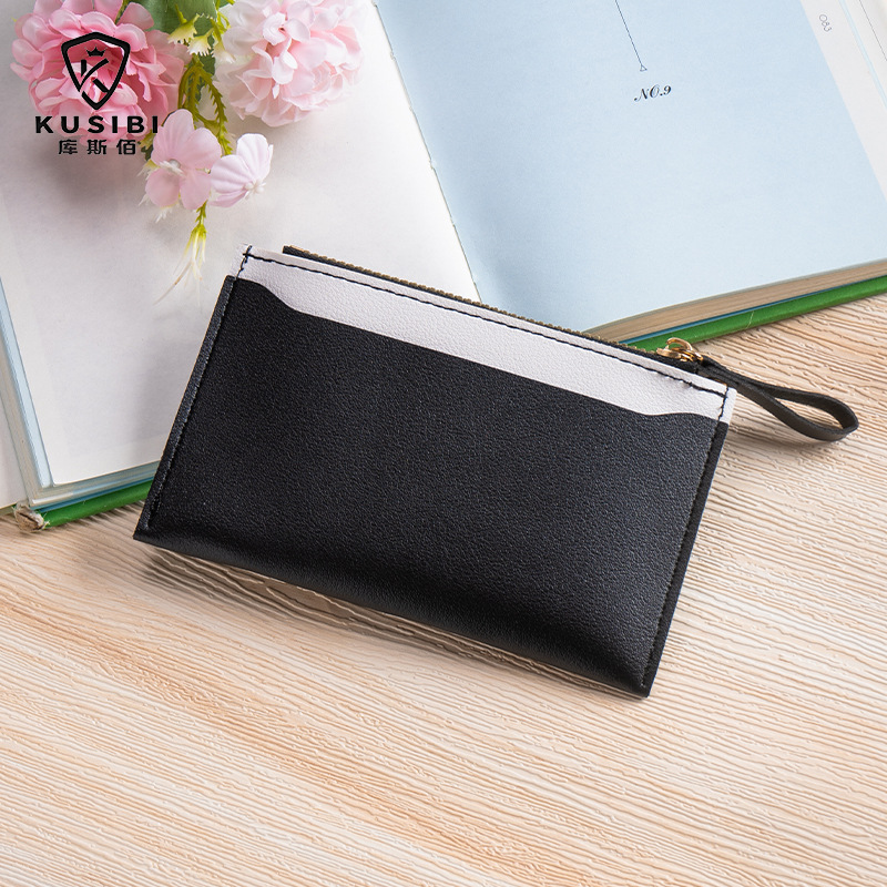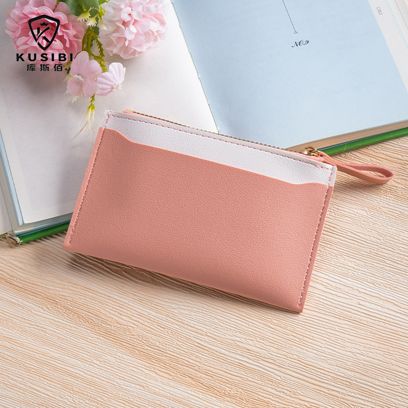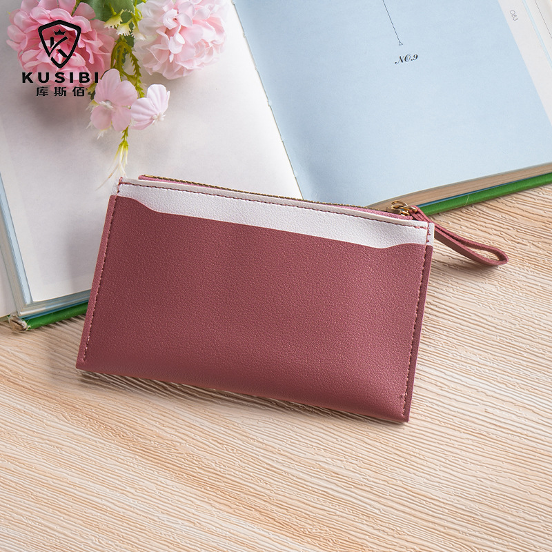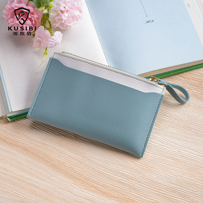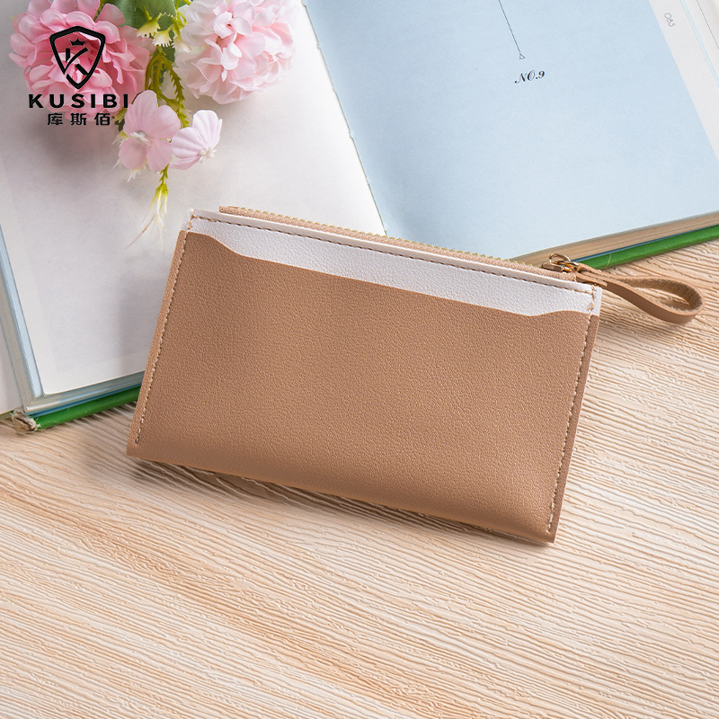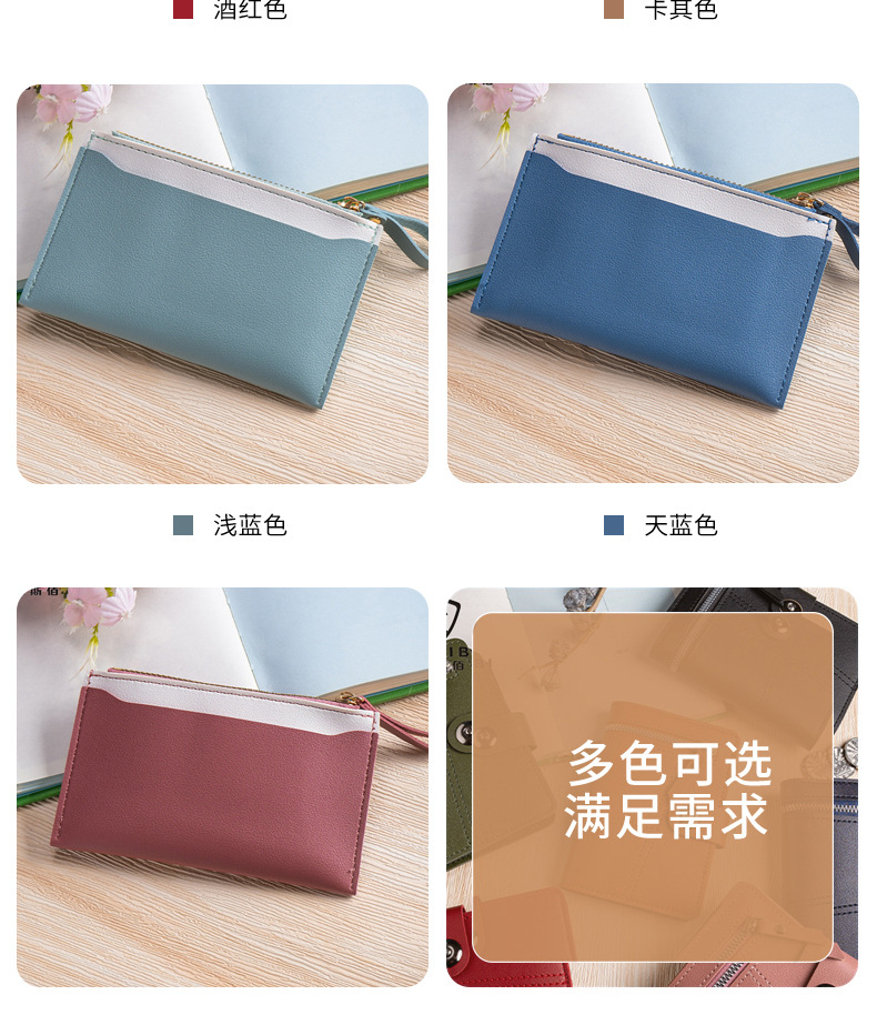 작은 신선한 지갑 카드 가방 여성 지퍼 동전 지갑 2024 새로운 재고 도매 PU 가죽 스티칭 대비 색상 ID 카드